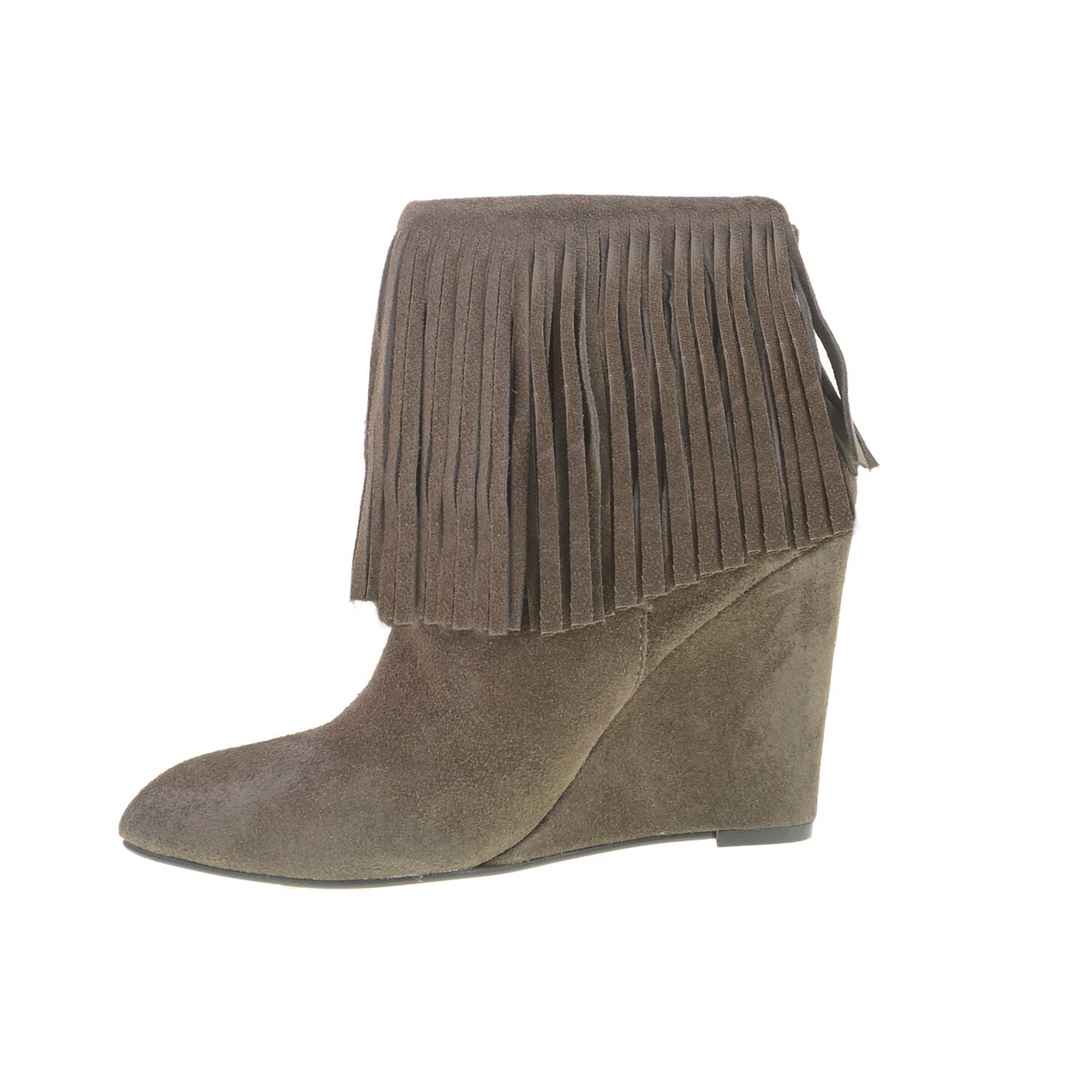 Put a little swing in your step with these fringed booties that can go from boho-chic to mod cool in an instant. A pointy toe and wedge heel keep them contemporary, while supple suede adds a touch of luxe. Back zipper for easy on and off. By Chinese Laundry Suede 3" heel, 6" shaft height, 10" shaft ...more