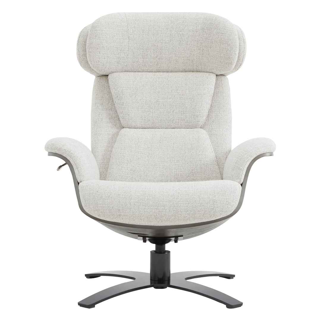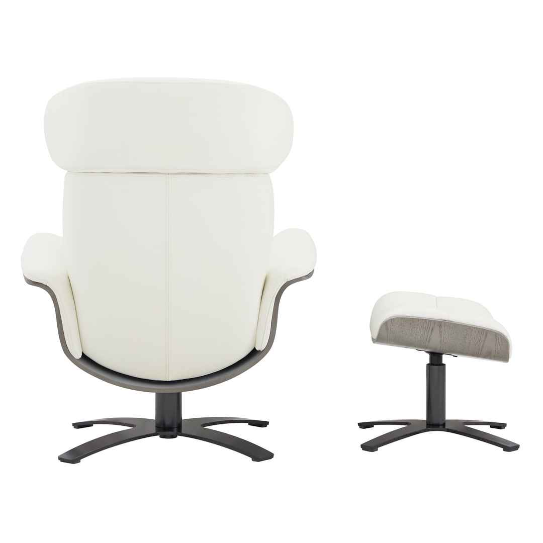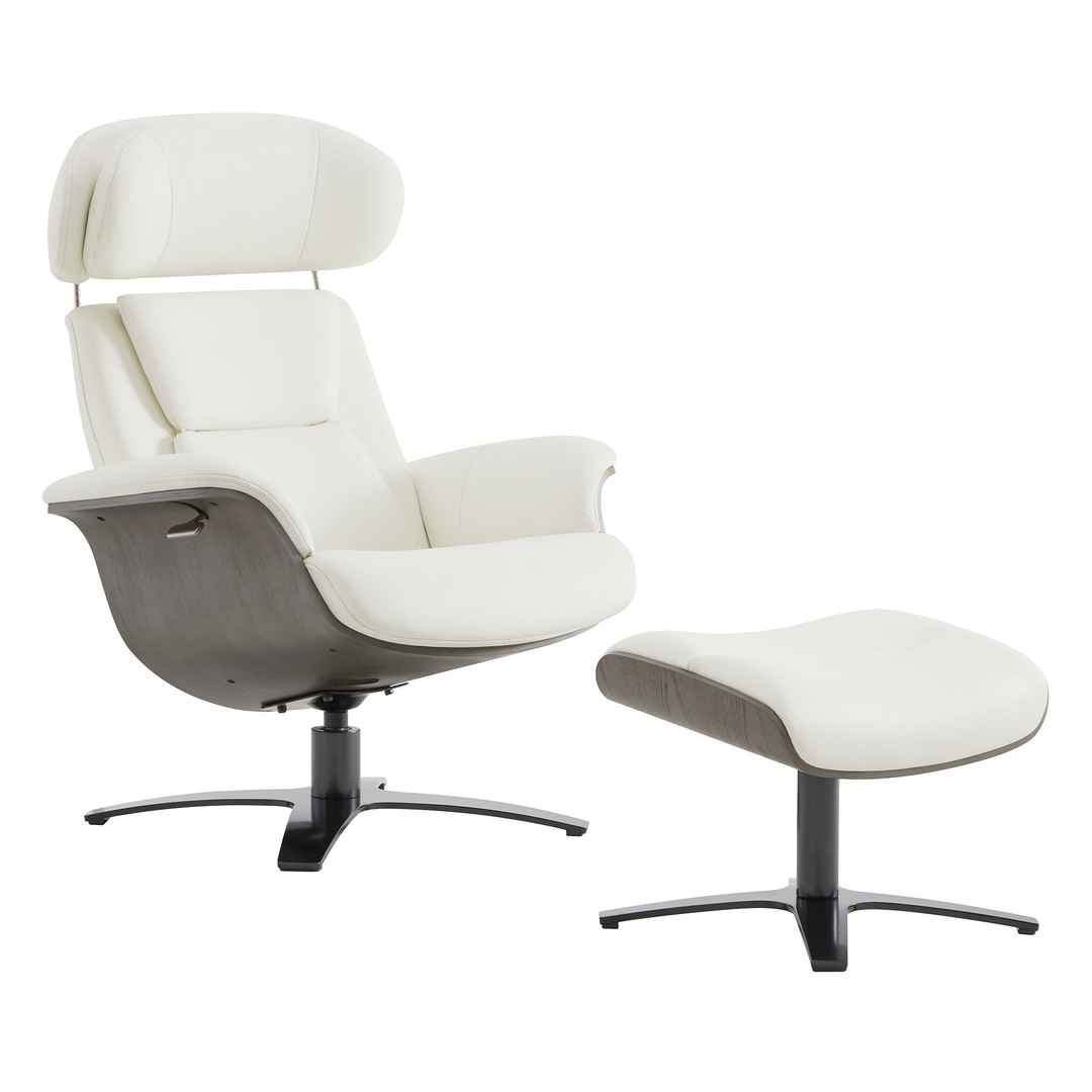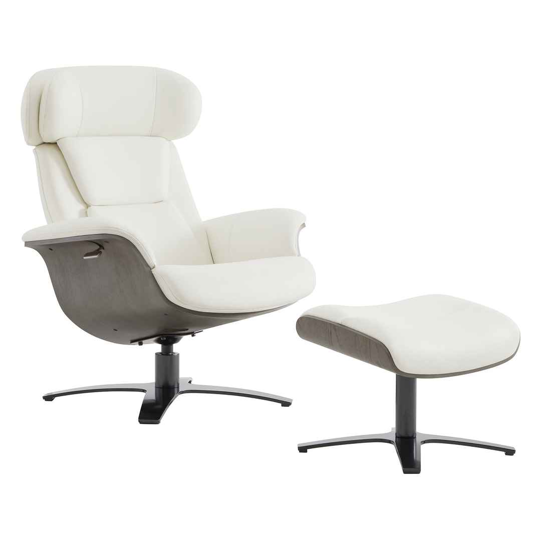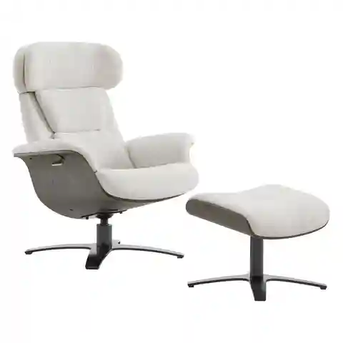 - Reclining Swivel Chair and Ottoman: This chair and ottoman set is just right for a modern office, den, or living room. A recline feature makes this chair even more comfortable when you need it. Sink into the double layered foam back cushion and relax. Finished in a contemporary neutral shad...