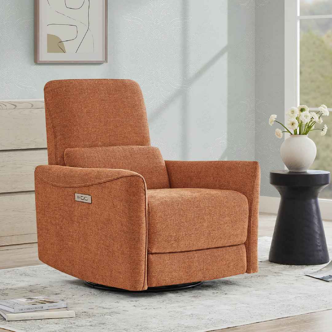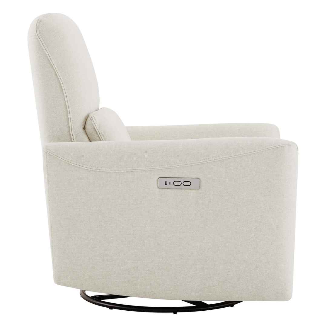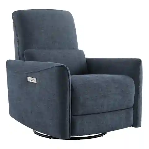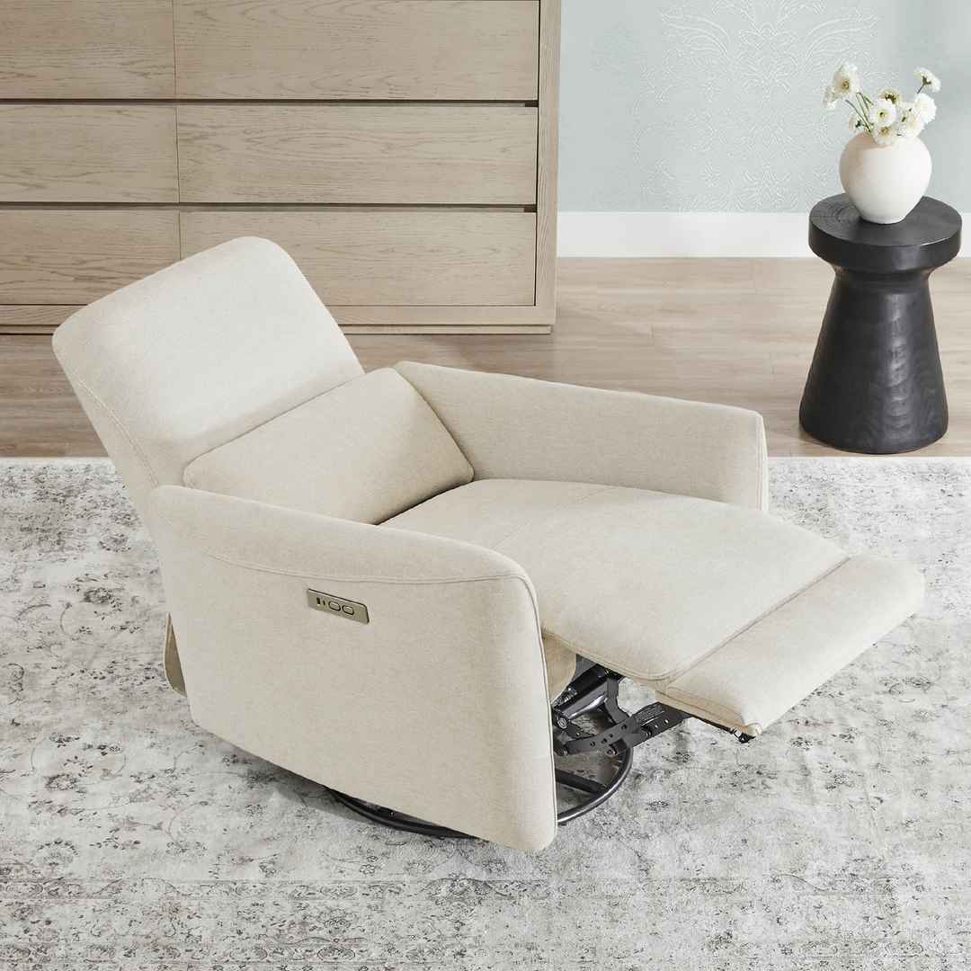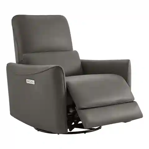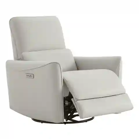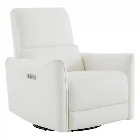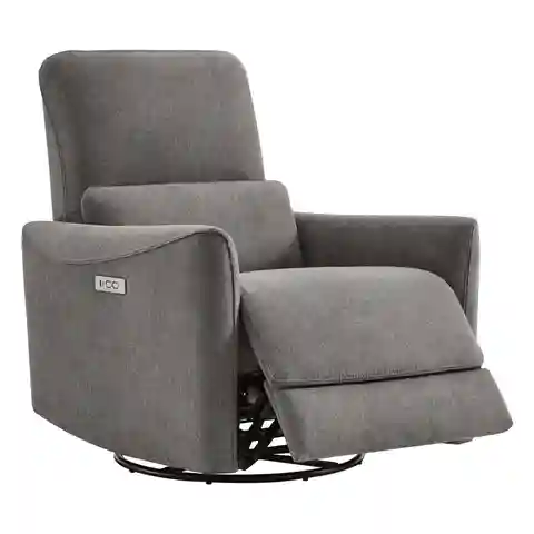 - Power Swivel Glider: Designed with Mom’s comfort in mind, it swivels (270 degrees), glides, and reclines quietly and smoothly with a push of button.