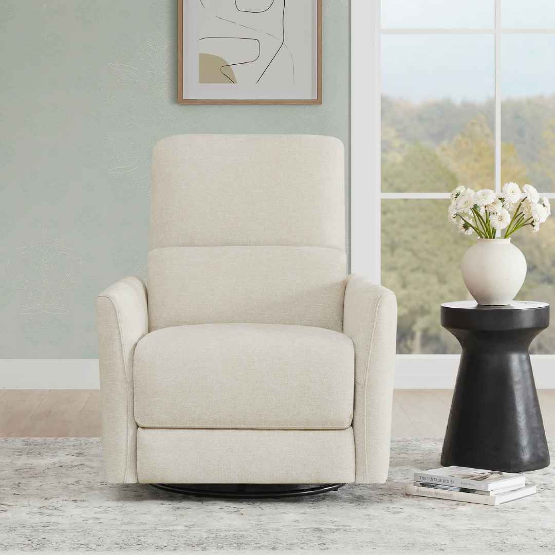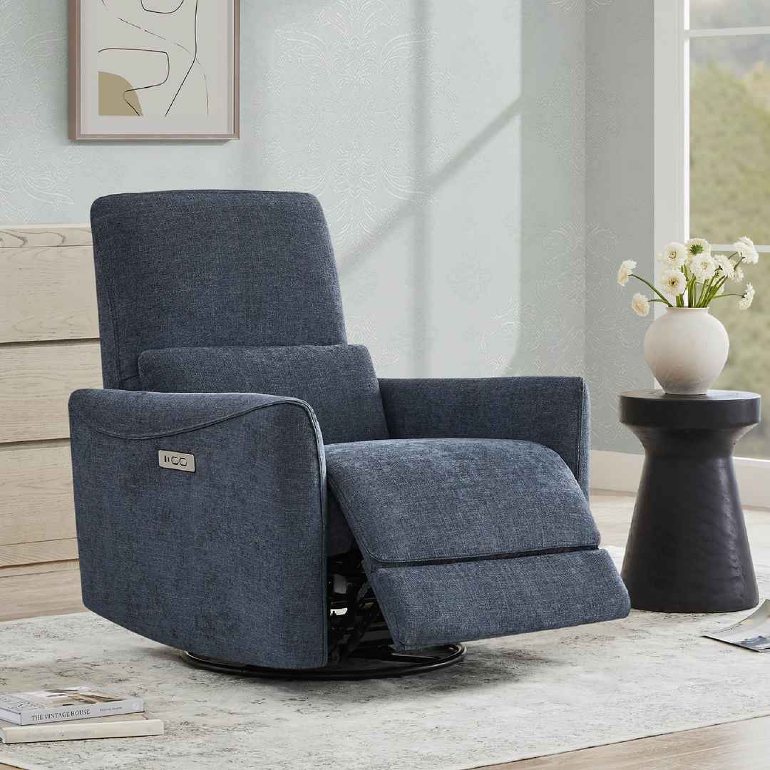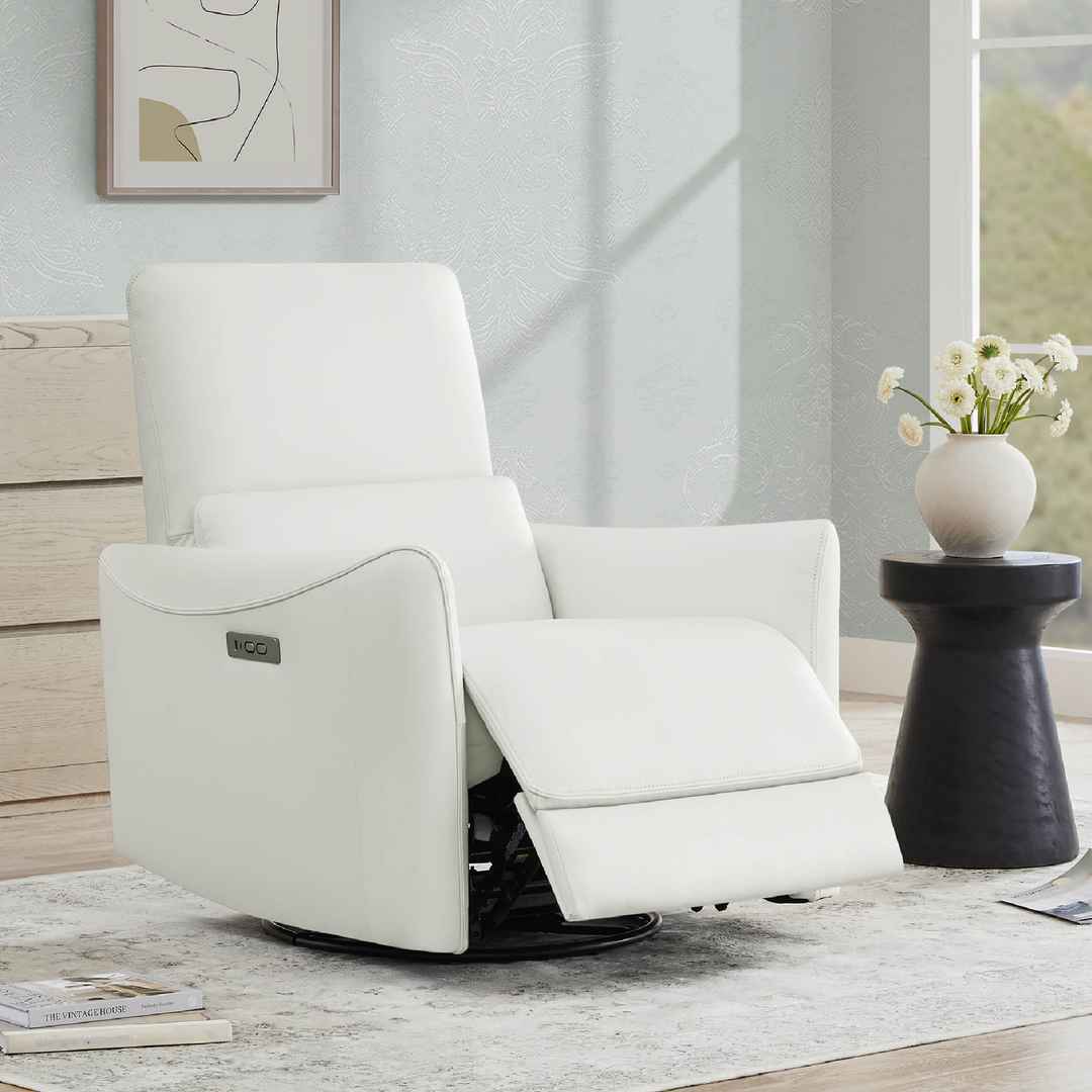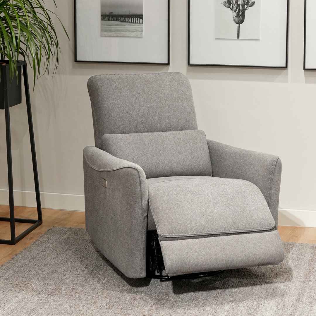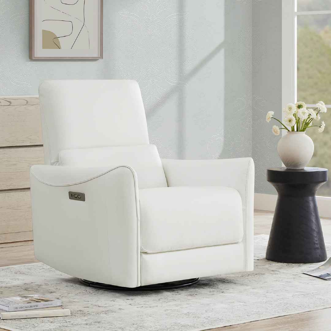 - Power Swivel Glider: Designed with Mom’s comfort in mind, it swivels (270 degrees), glides, and reclines quietly and smoothly with a push of button.