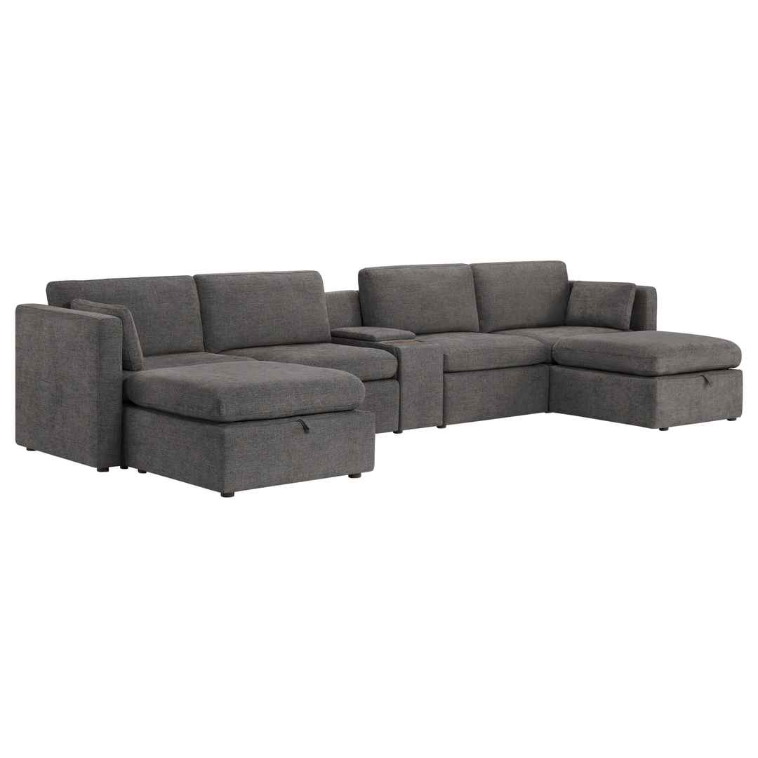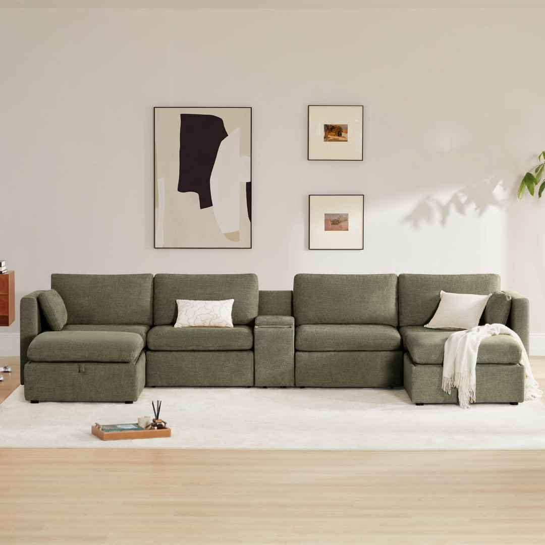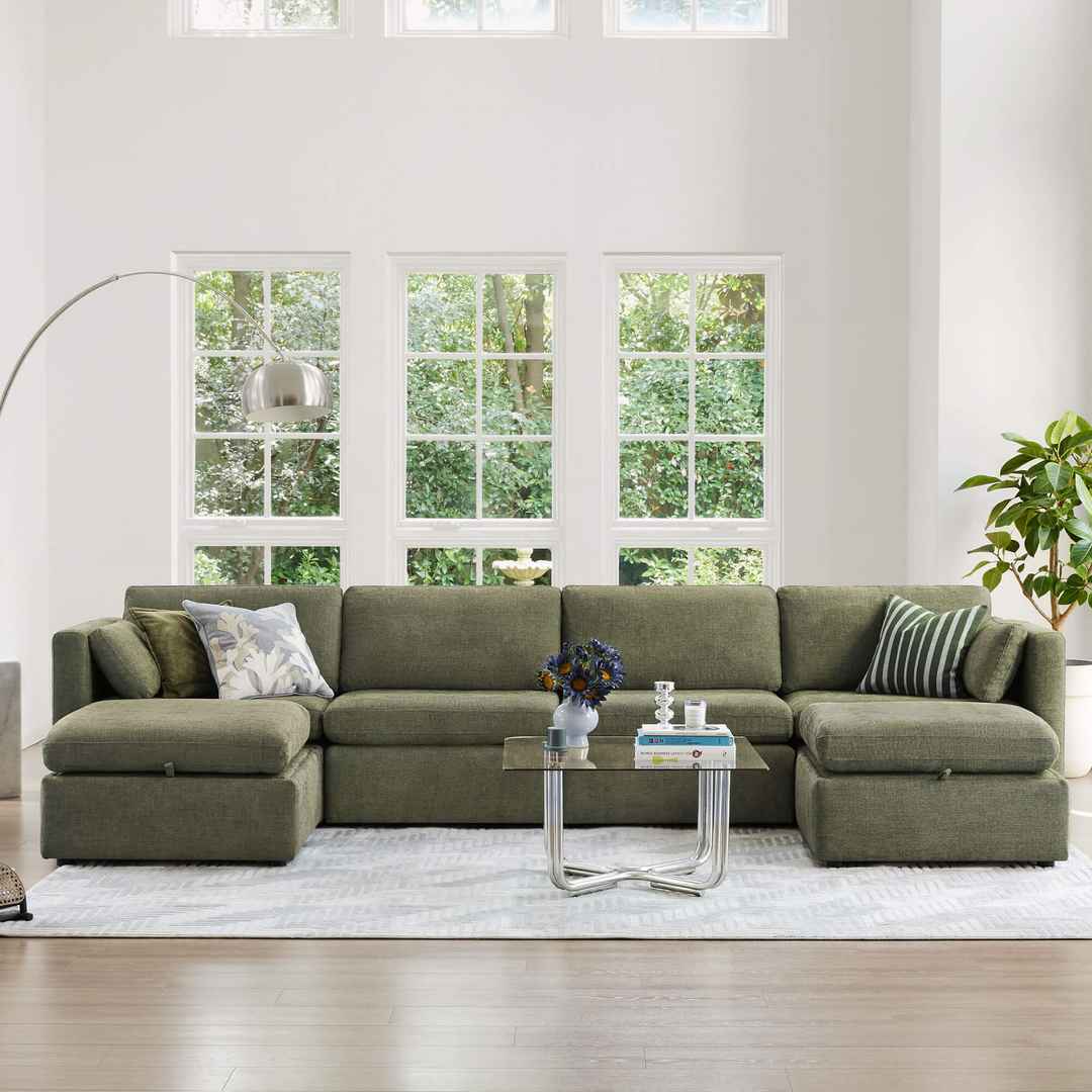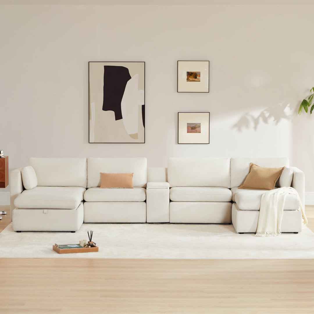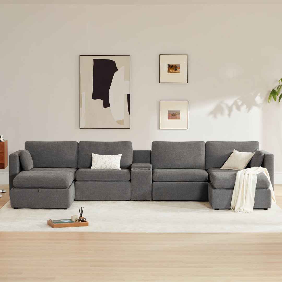 6-PIECE U-SHAPED MODULAR SOFA WITH LARGER SEATS - CHITA modular couches feature clean and classic design with comfortable and wider seats to offer you a never ending relax after a long day. Each seat has a 34'' seat width - 30% larger than most counterparts. Individual seat dimension: 34''W x 21...