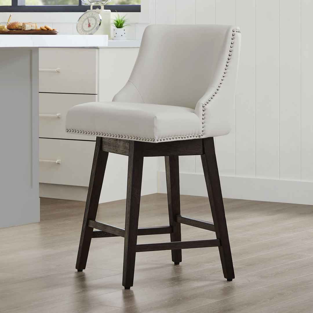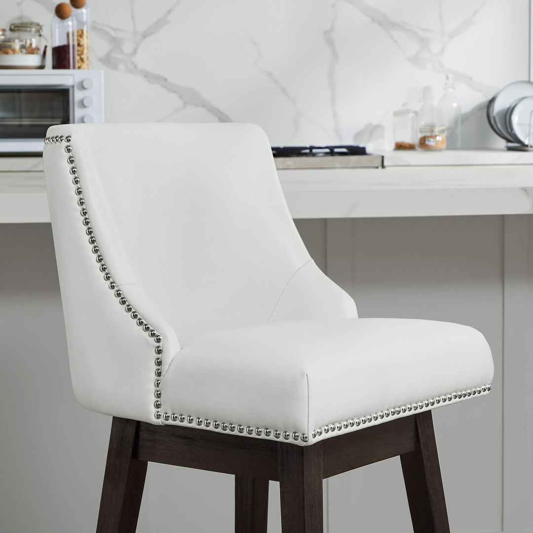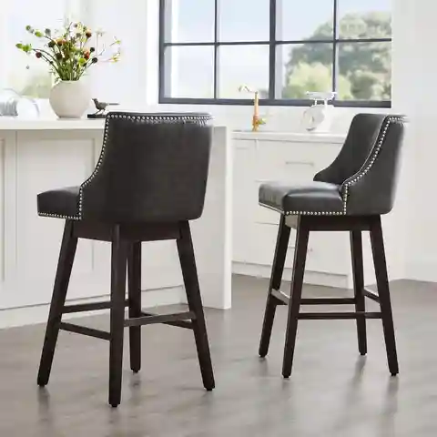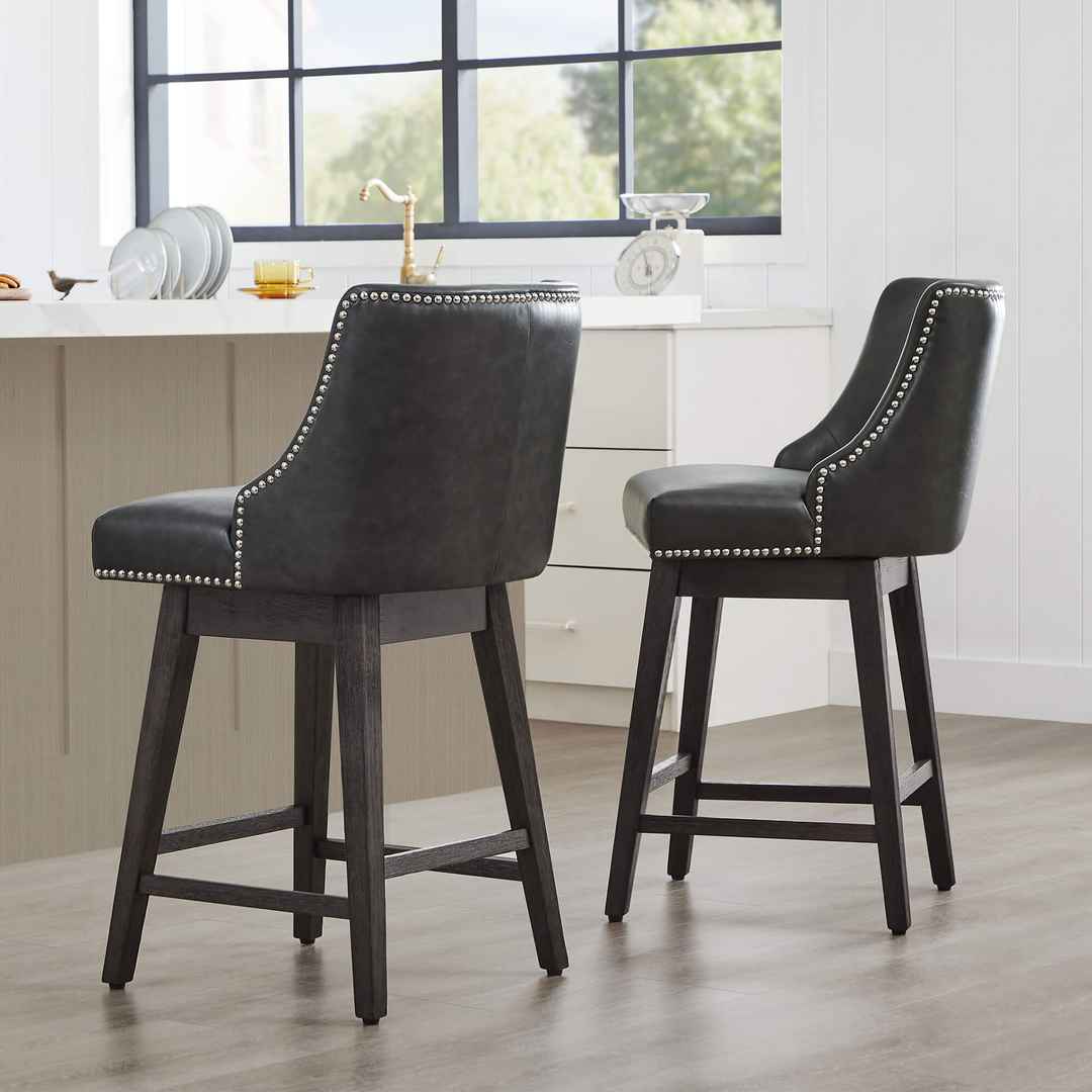 The clean profile of the stool and the silver nailhead trim will lend a modern air of sleek sophistication to your kitchen or bar area more