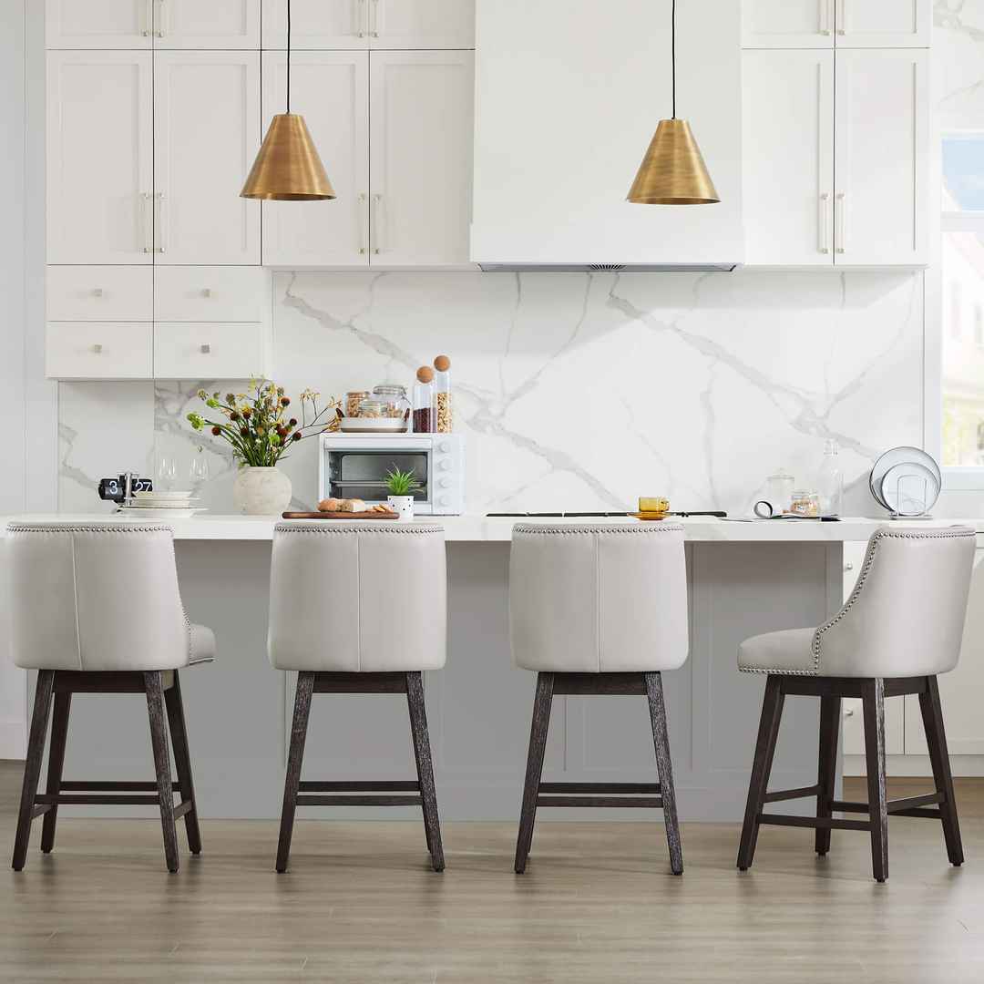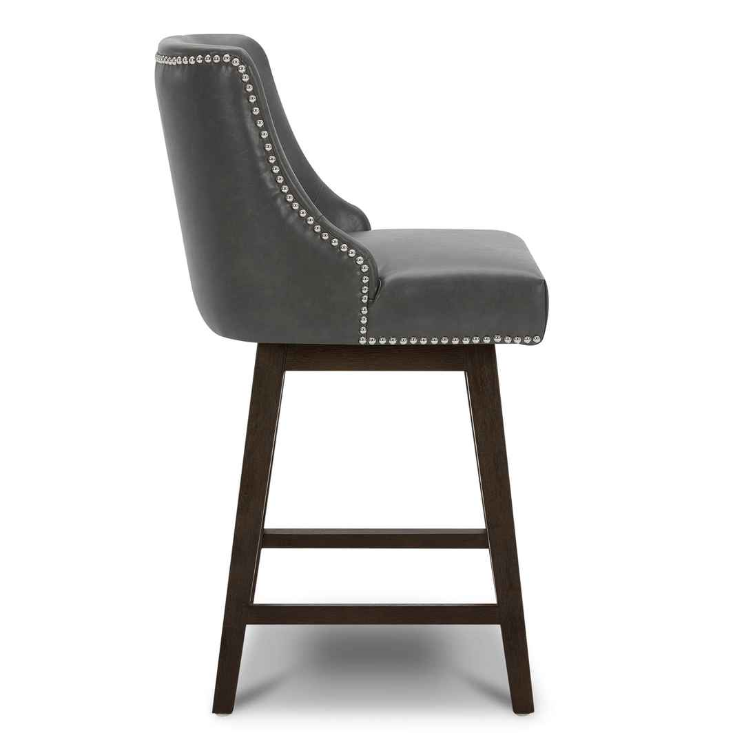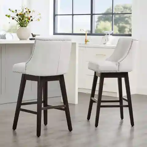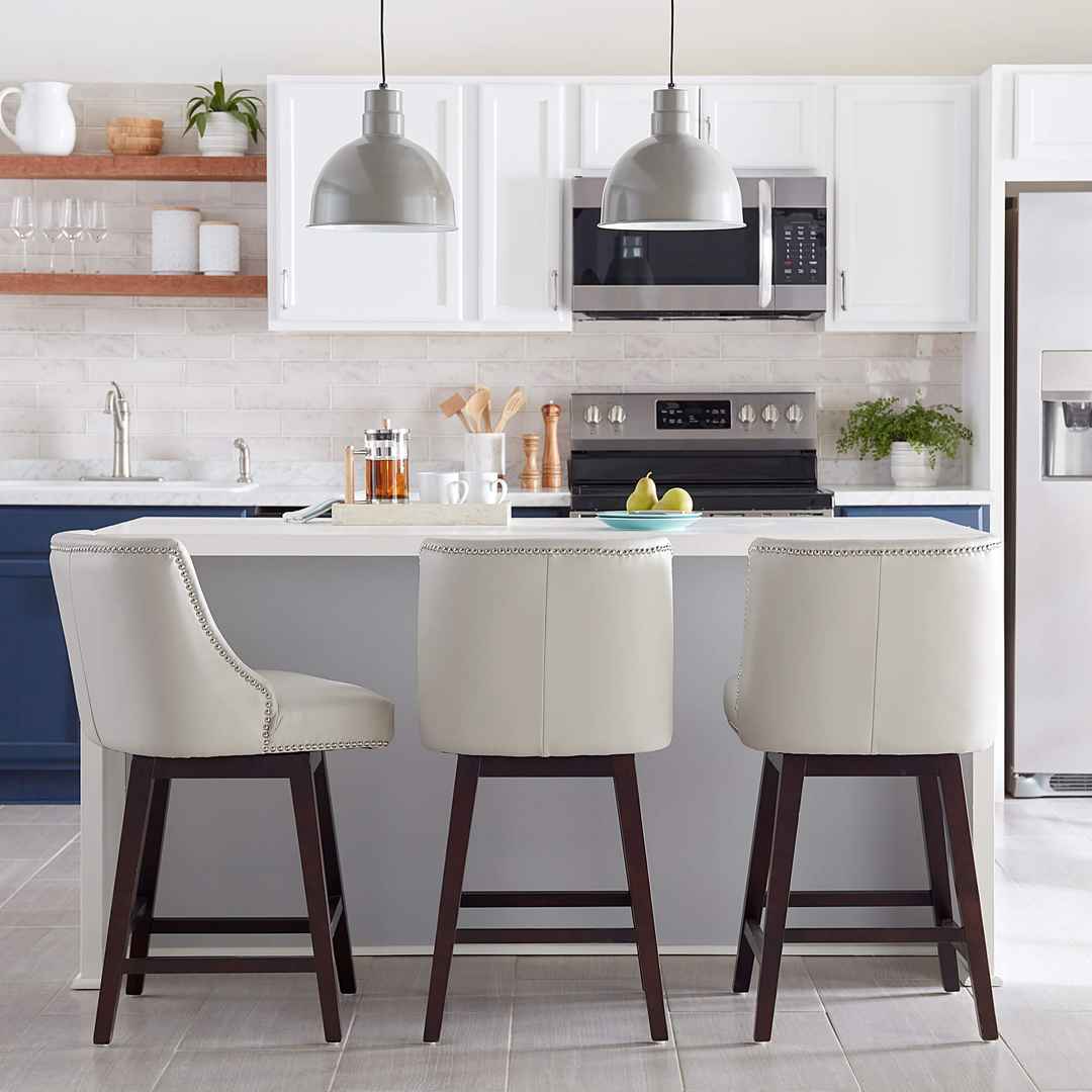 The clean profile of the stool and the silver nailhead trim will lend a modern air of sleek sophistication to your kitchen or bar area more