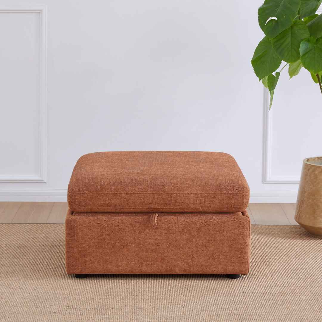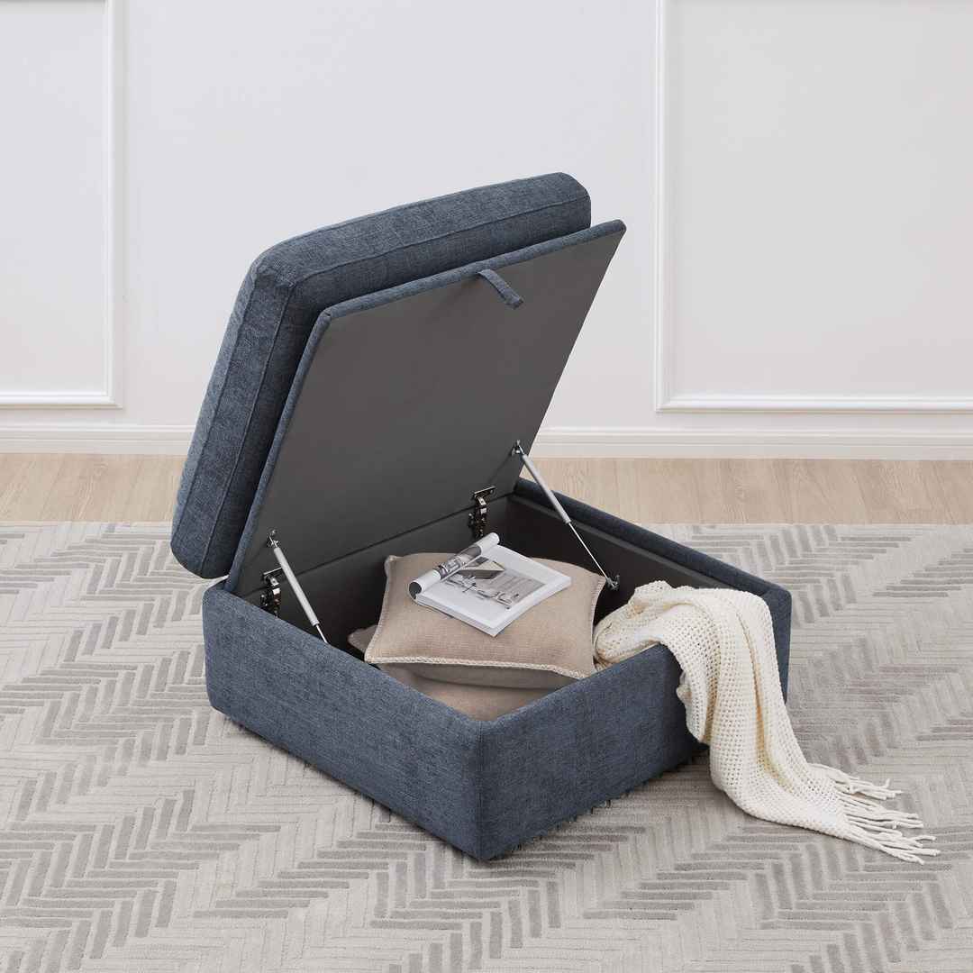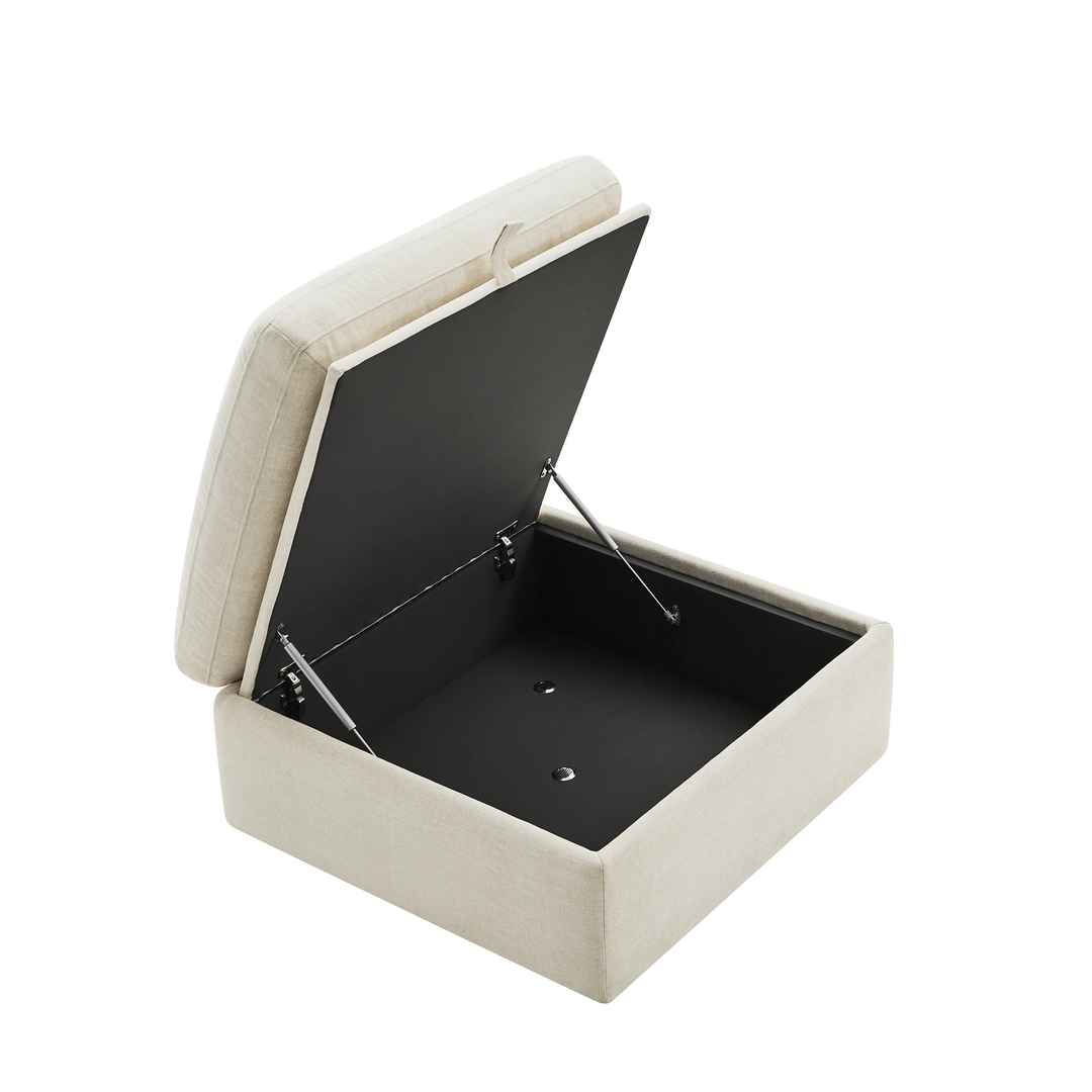 SPACIOUS & VERSATILE STORAGE OTTOMAN - Lift up the ottoman top with a built-in smooth gas-lift mechanism to reveal plenty of out-of-sight storage. dStorage space: 28.7''W x 27.6''D x 8.3''H. In addition, it is a perfect footrest or table when topped with a tray.