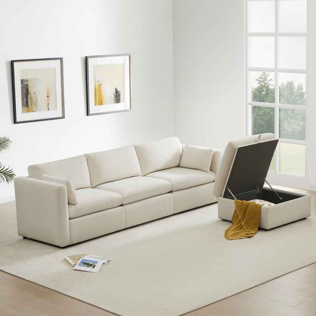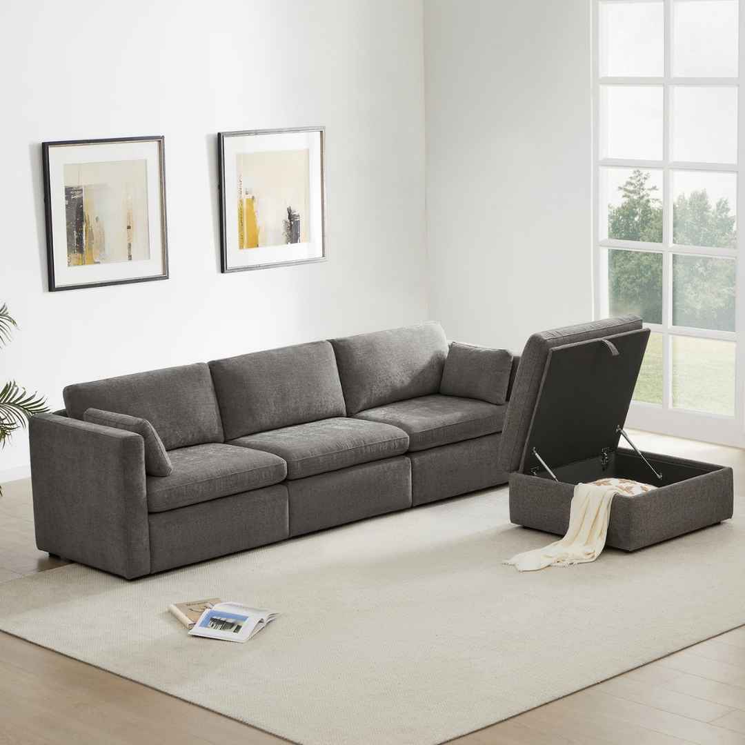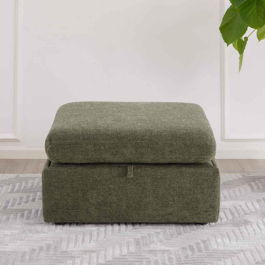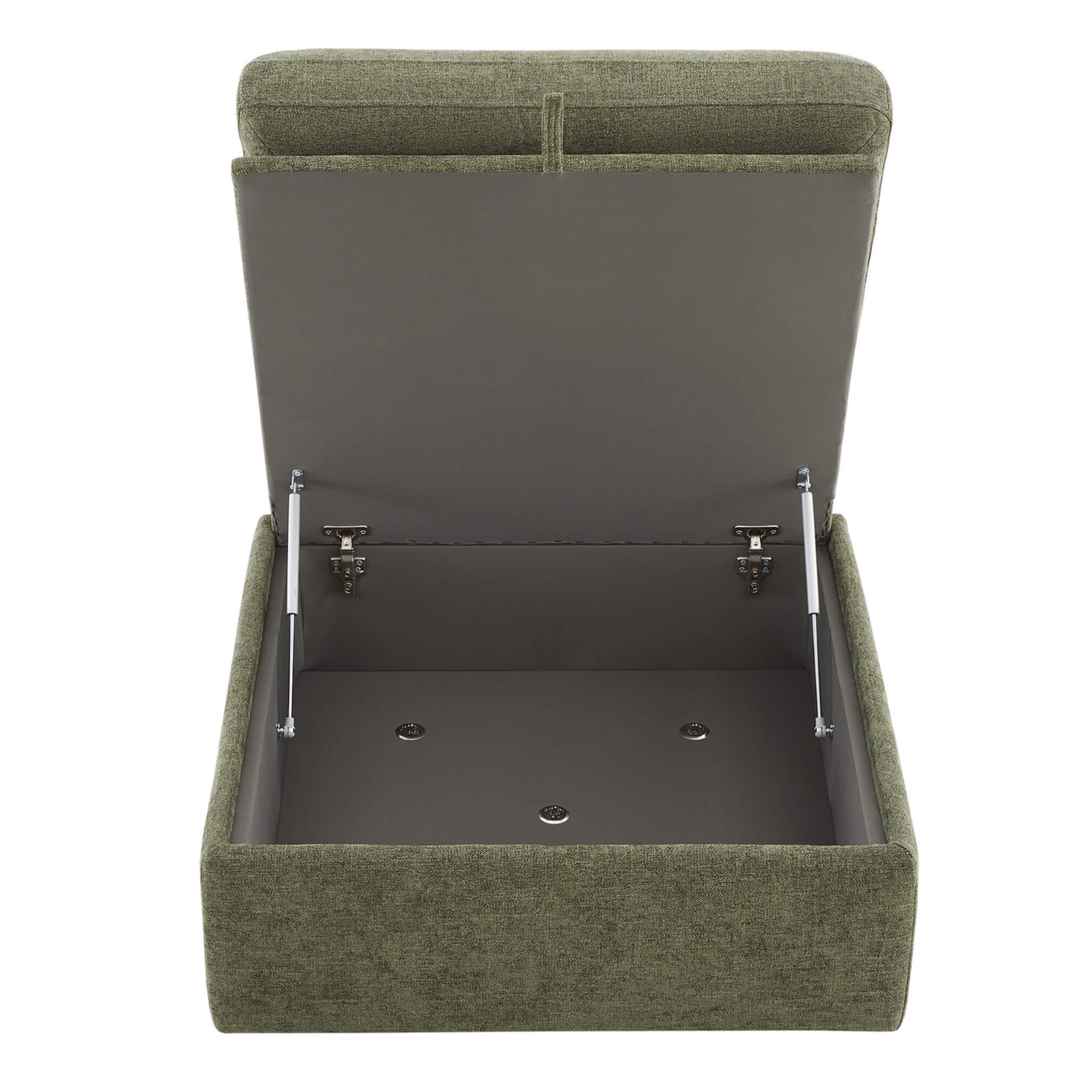 SPACIOUS & VERSATILE STORAGE OTTOMAN - Lift up the ottoman top with a built-in smooth gas-lift mechanism to reveal plenty of out-of-sight storage. dStorage space: 28.7''W x 27.6''D x 8.3''H. In addition, it is a perfect footrest or table when topped with a tray.