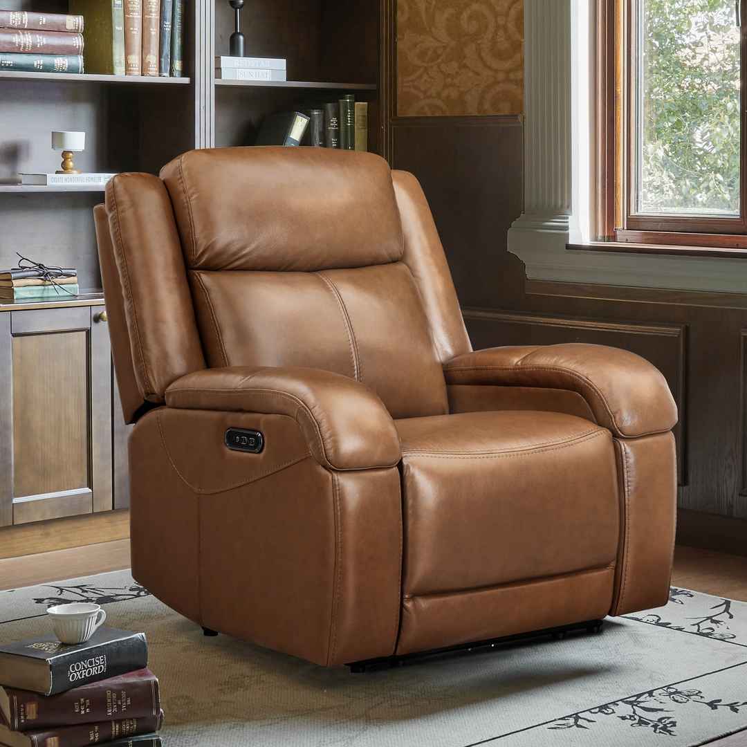 Isaac Genuine Leather Wall Hugger Power Recliner with Power Headrest