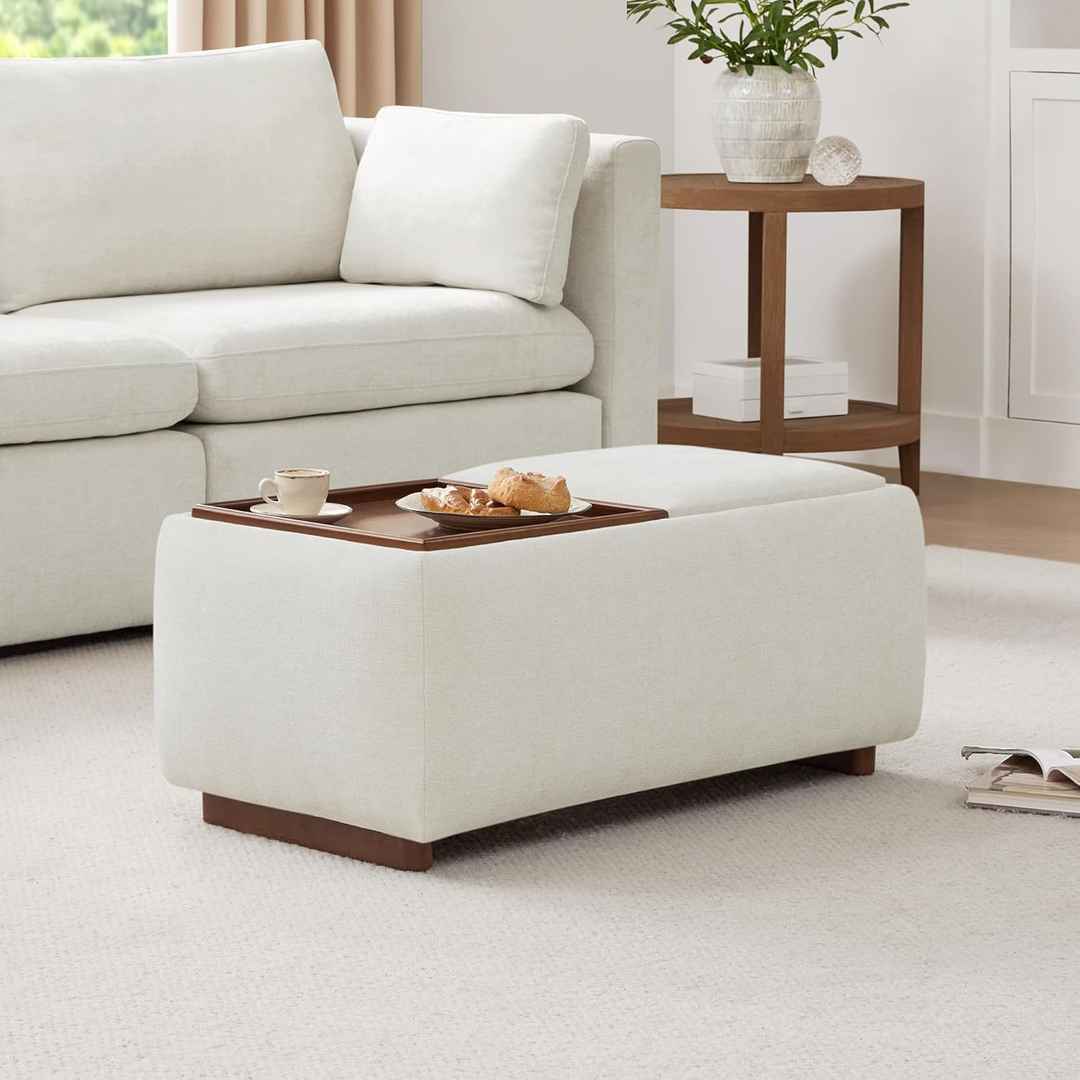 Maximize your space with our Rectangle Storage Ottoman, featuring a compact profile, soft upholstery, and a sturdy frame. Ideal for any room, this ottoman offers hidden storage and cushioned wooden lids that double as a coffee table. The reversible, modular tops are perfect for holding glasses or...