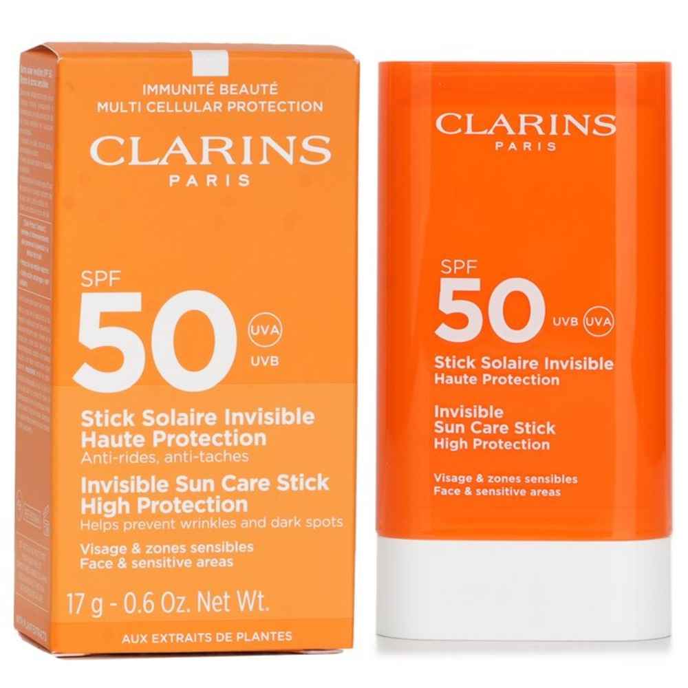 Clarins's Invisible Sun Care Stick SPF 50 easily applies to the sensitive areas of the face such as the cheeks, ears, nose, and eye areas. This stick fits perfectly in pockets for application on-the-go and leaves a lightweight bare skin texture.As well as protecting the skin from harmful UVA and UVB...more