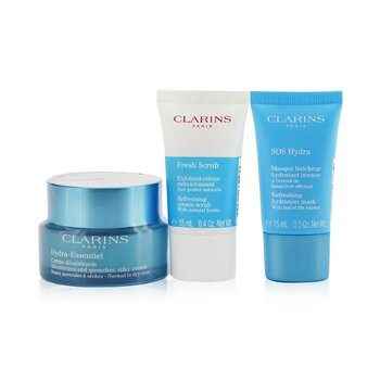 Hydration Essentials Gift Set: 1x Hydra-Essentiel Moisturizes & Quenches Silky Cream - Normal to Dry Skin 50ml/1.7oz 1x Fresh Scrub - Refreshing Cream Scrub 15ml/0.4oz 1x SOS Hydra Refreshing Hydration Mask - For Dehydrated Skin 15ml/0.5oz 1x Pouch Ideal both for personal use & as a gift