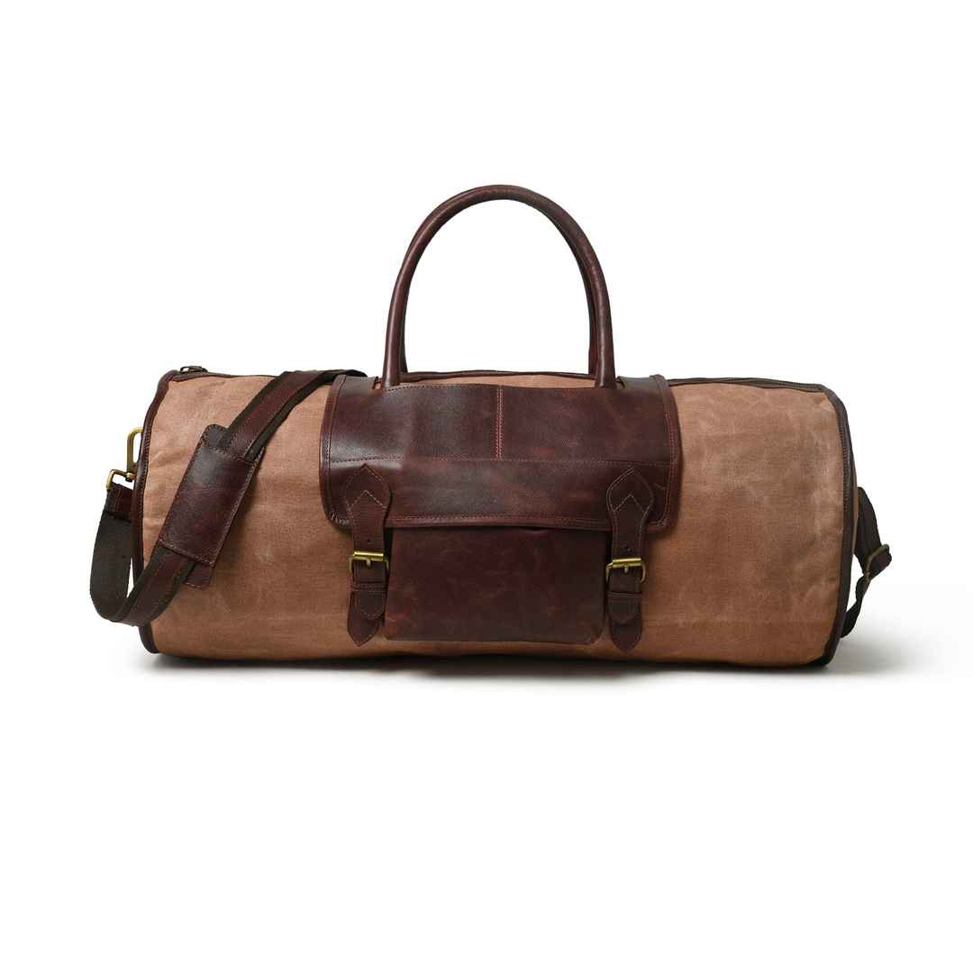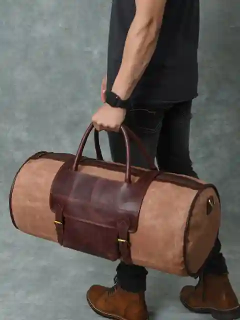The super-stylish unisex canvas duffle bag is undoubtedly a trendsetter all-around the year. This opulent, oblong weekender bag is made of the finest quality waxed canvas and top-quality leather accentuated with intricate detailing on the stitches. We offer excellent craftsmanship to ensure uniquene...more