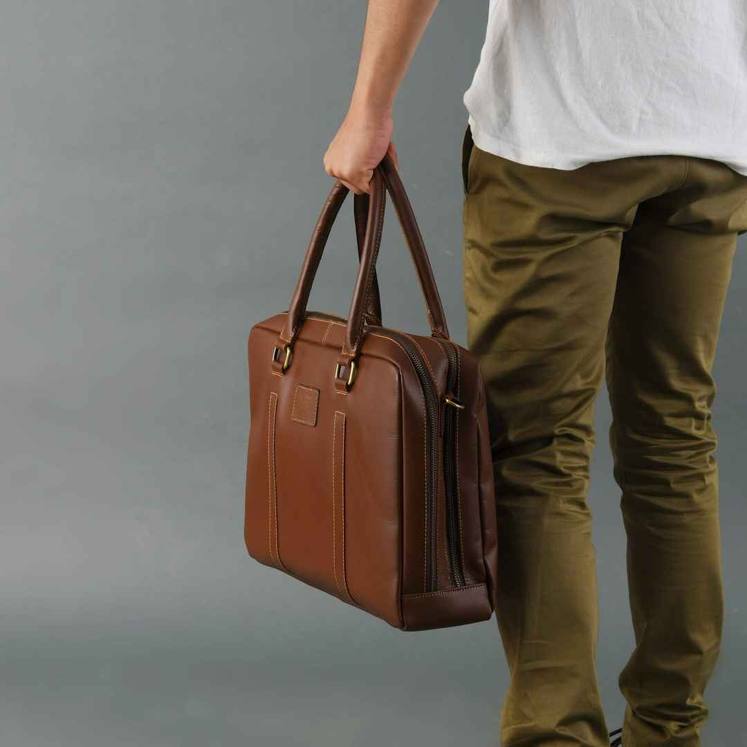 For the modern corporate professional, the Dixon Brown Buffalo Leather Laptop Office Briefcase embodies style and substance. Crafted from premium buffalo leather, it's not just a briefcase; it's a statement. This bag exudes class with its rich brown hue and is complemented by high-quality brass hard...more