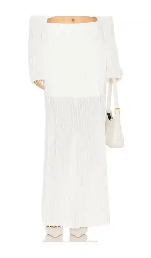 Clea Manning Knit Skirt in Ivory. - size L (also in M, S, XS) Clea Manning Knit Skirt in Ivory. - size L (also in M, S, XS) Knit textile. Imported. Dry clean recommended. Unlined. Pull-on styling. Ribbed knit design. Item not sold as a set. Skirt measures approx 43 in length. CLEA-WQ4. 1146.