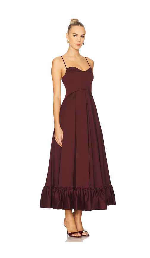 Clea Vandalia Dress in Burgundy. - size S (also in XS) Clea Vandalia Dress in Burgundy. - size S (also in XS) Self: 97% cotton, 3% elastane, Outer: 100% cotton embroidery, Lining: 52% polyester, 48% viscose. Dry clean only. Sweetheart neckline. Square back. Adjustable shoulder straps. Inverted curve...more