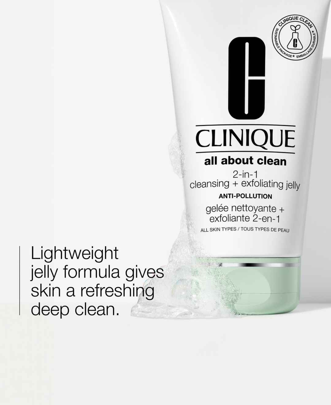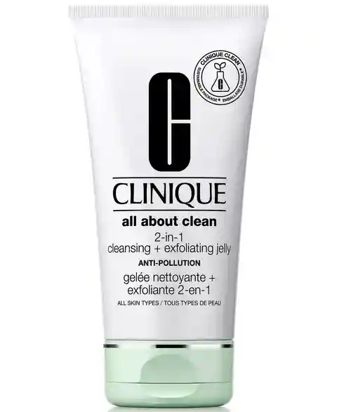 Clinique All About Clean 2-in-1 Cleansing + Exfoliating Face Jelly is a deep-cleaning jelly that helps remove buildup from pollution and other impurities.
