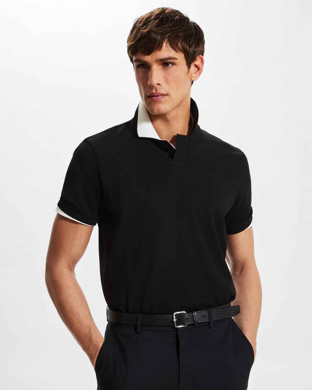 Pique your interest. A Johnny collar—free of buttons at the placket—updates the year-round staple. Wear this black polo shirt with everything from jeans to shorts—under blazers instead of a button-down or alone with a polished pair of slacks. Style Number: 795806094