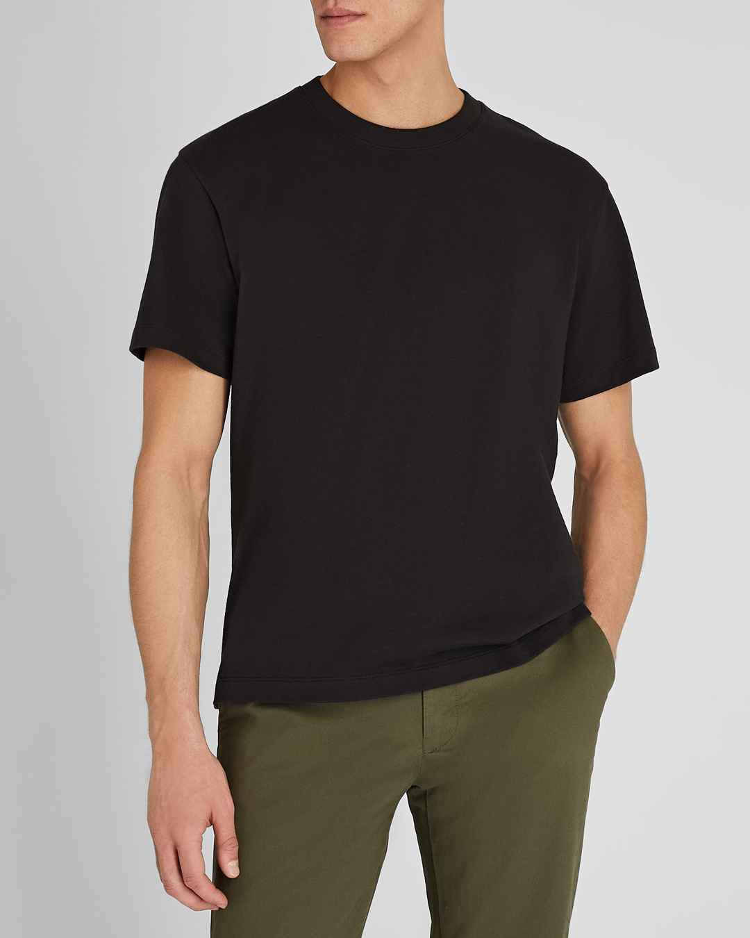 Our oversized T-shirt. This black relaxed fit t-shirt features a slightly oversized silhouette and heavier-weight cotton that offers more structure than a layering tee. Style Number: 795798077