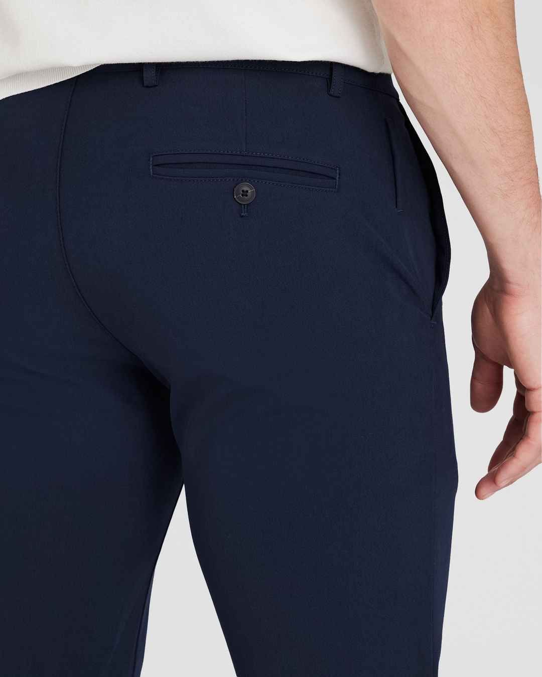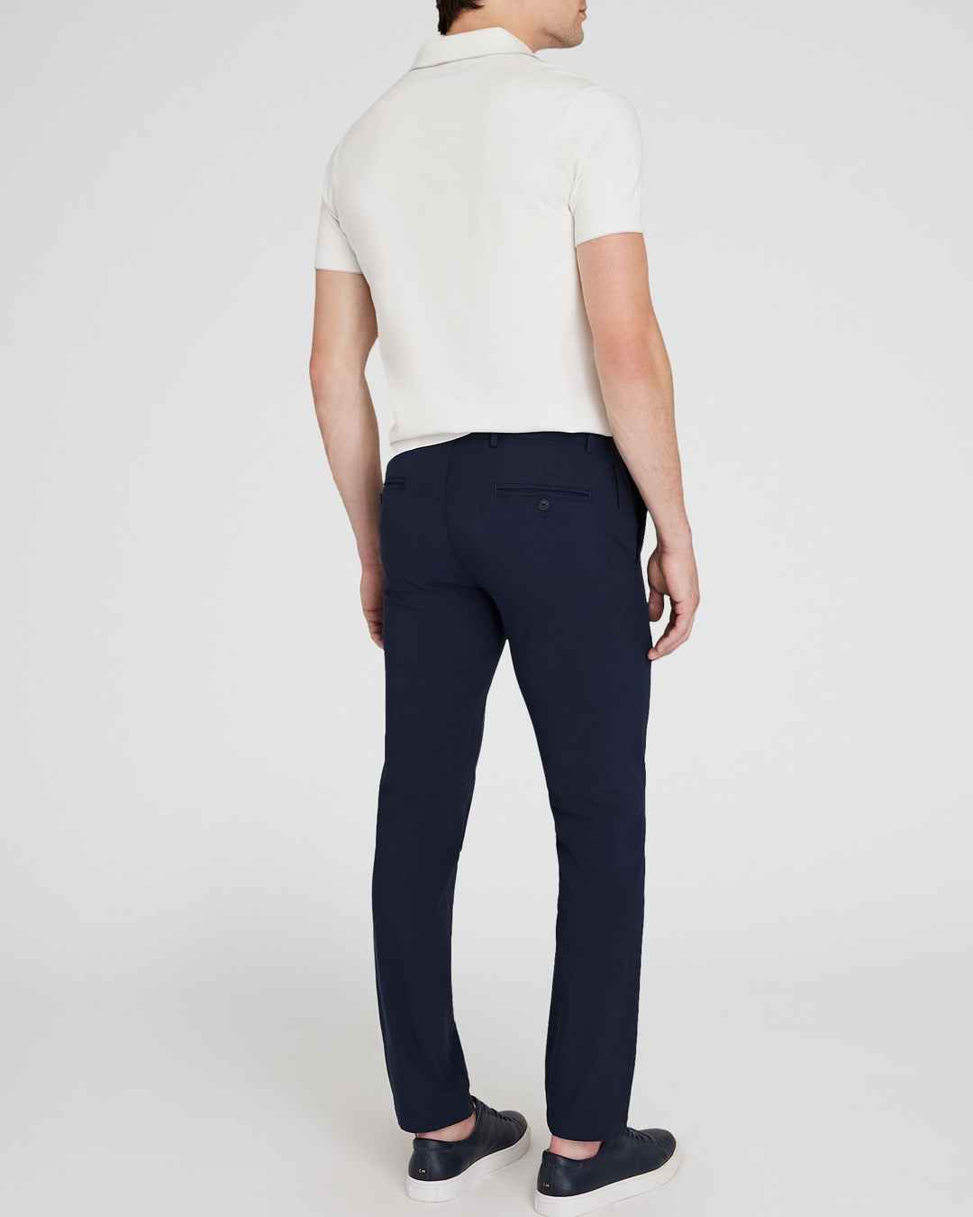 A modern take on the essential chino pants. Tailored for a meticulous slim fit in a crisp, mid-weight tech cotton with four-way stretch. Wear these navy tech chino pants year-round. This piece is part of our Club Monaco Engineered with CMTECH Collection, a curation of styles designed with technic...
