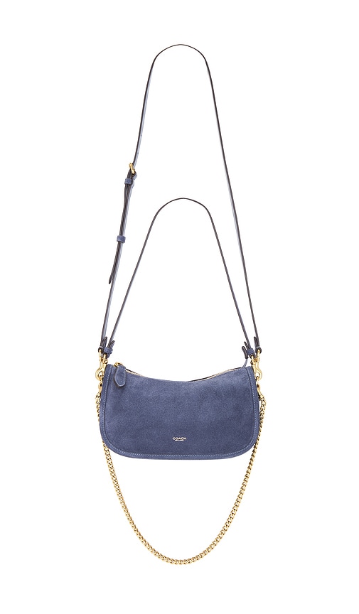 Coach Waverly Shoulder Bag Light Denim in Blue. Coach Waverly Shoulder Bag Light Denim in Blue. Suede and refined calf leather exterior with fabric lining. Zip-top closure. One main compartment. Interior snap-button pocket. Versatile casual to elevated strap options. Dust bag included. Measures appr...more