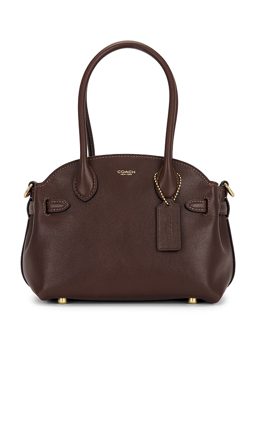 Coach Soft Empire Carryall 21 in Brown. Coach Soft Empire Carryall 21 in Brown. Leather exterior with suede interior. Top zip closure. One main compartment. One interior slip pocket with button closure. Dual handles. Adjustable side straps with buckle closure. Measures approx 8.5 W x 6 H x 5.5 D Sho...more