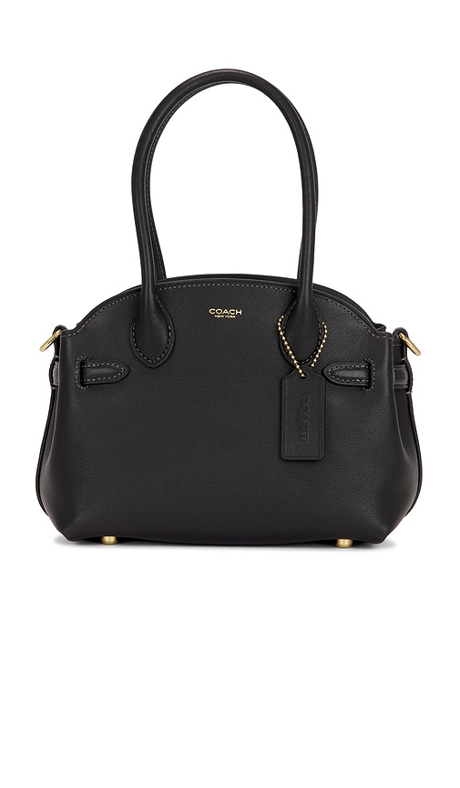 Coach Soft Empire Carryall 21 Bag in Black. Coach Soft Empire Carryall 21 Bag in Black. Leather exterior with suede interior. Top zip closure. One main compartment. One interior slip pocket with button closure. Dual handles. Adjustable side straps with buckle closure. Measures approx 8.5 W x 6 H x 5...more