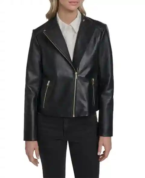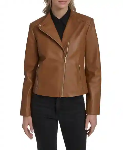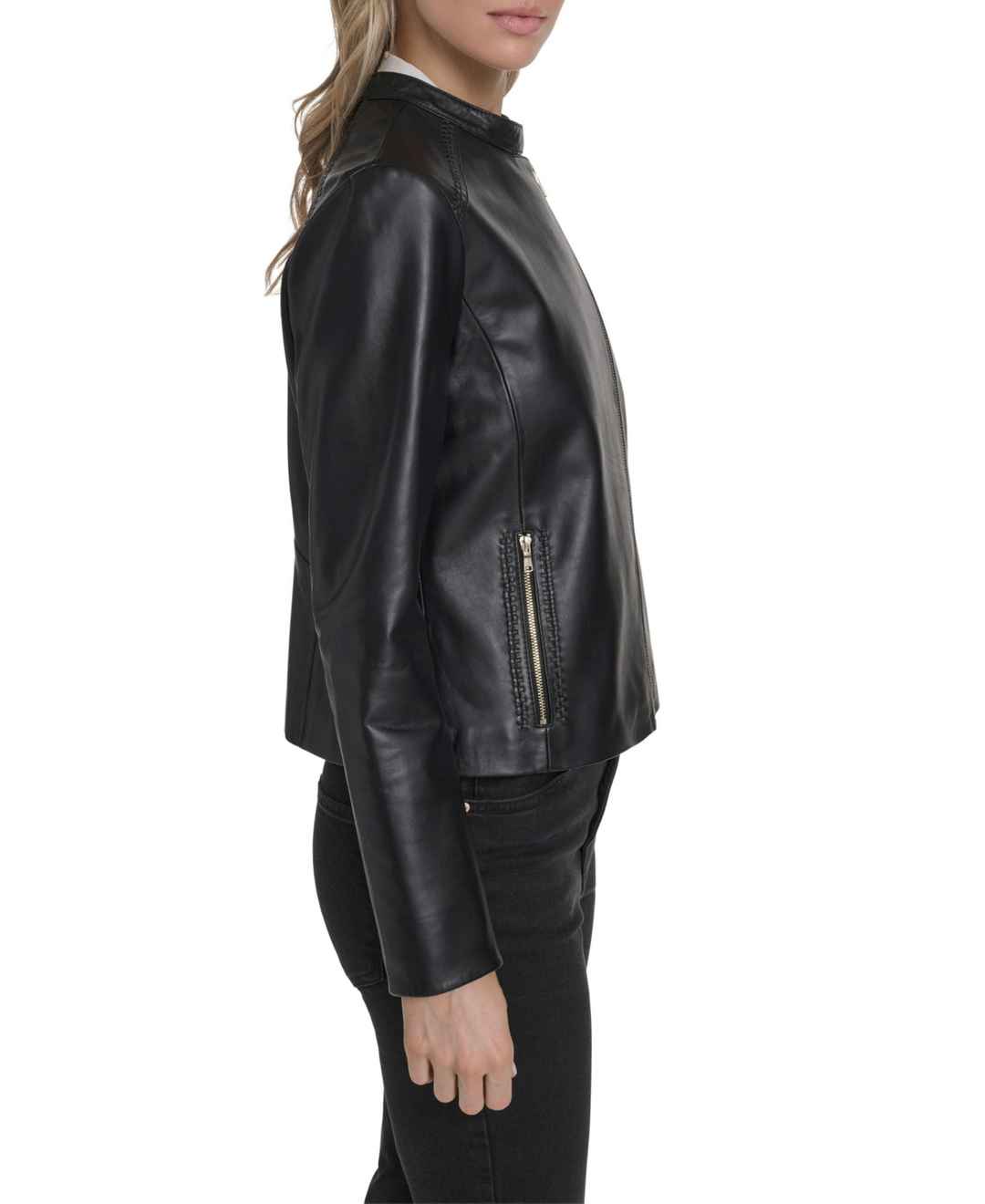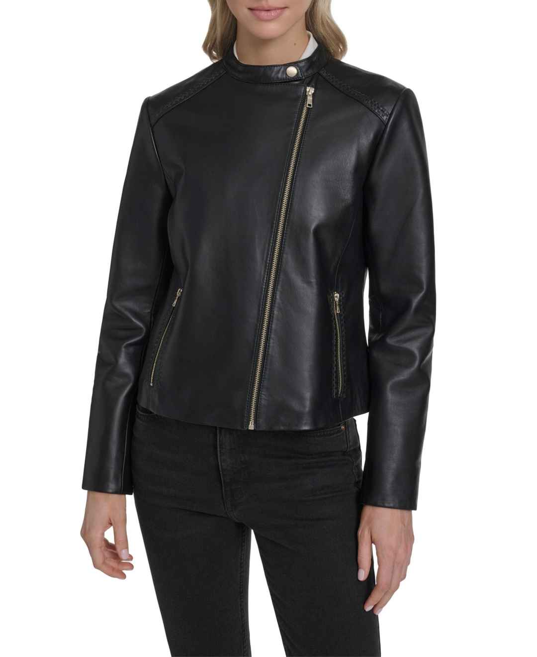 Elevate your look with this timless, tailored Cole Haan leather jacket—perfect for an evening out.