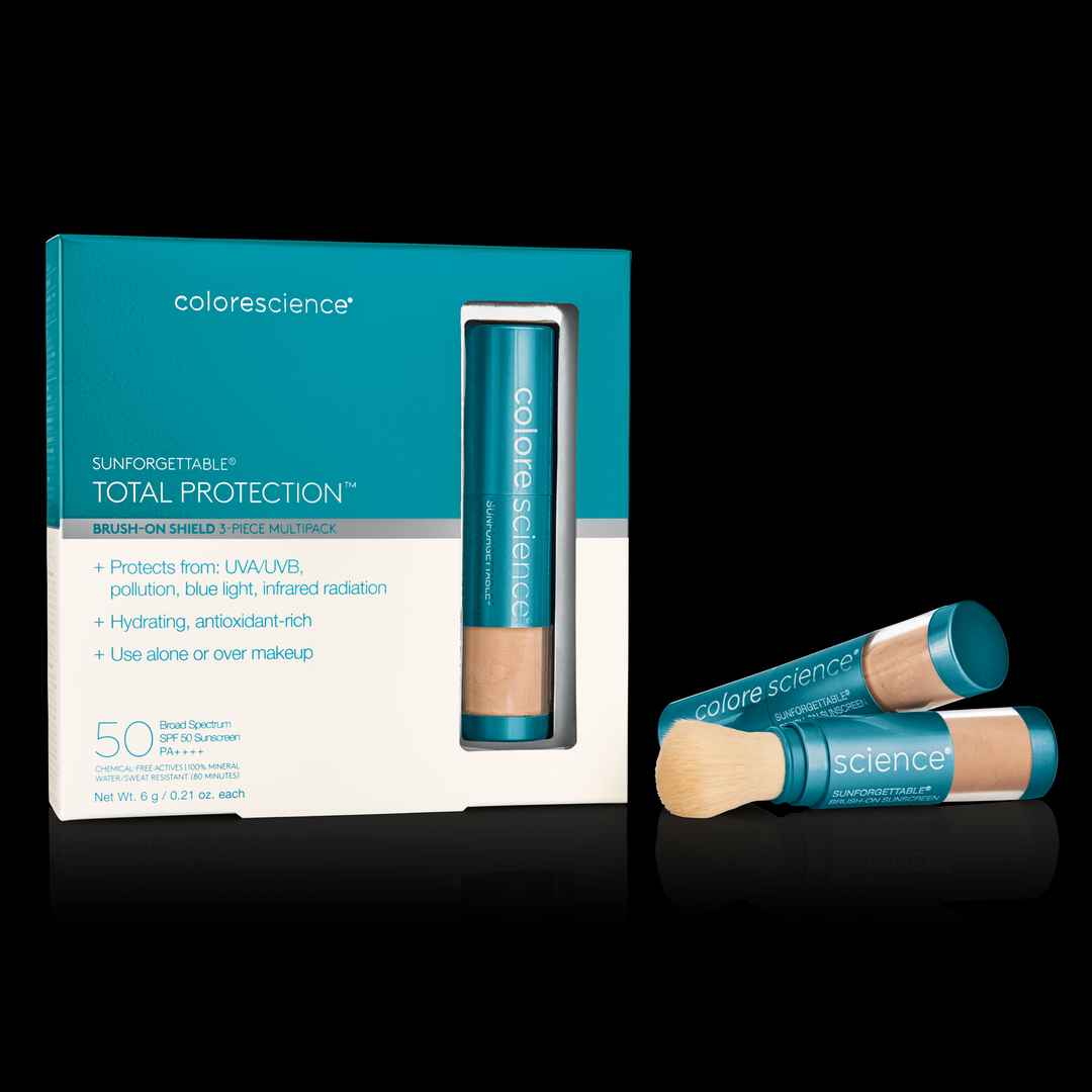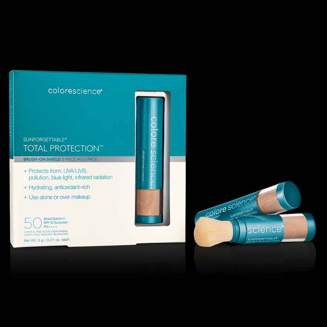 Buy 2 brushes, get 1 free with our built-in Multipack discount ($207 value). Powered by EnviroScreenTechnology, ColorescienceSunforgettable Brush-On Shield Multipack offers powerful SPF 50 UVA/UVB protection, alone or over makeup. Perfect for your car, purse and home; sand or snow. Protect the whole...more