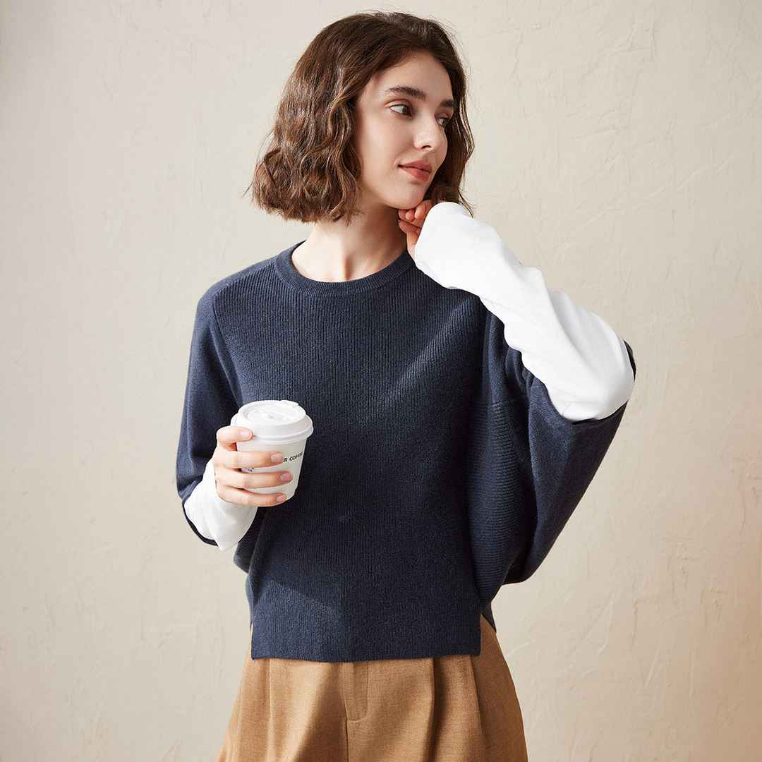 100% Cashmere Loose Batwing Sleeve Sweater