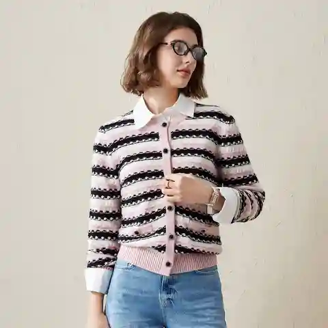 This Striped Knitted Button Up Cardigan is a stylish and cozy addition to any wardrobe. With its vibrant and playful stripes in various shades, this cardigan combines classic and modern aesthetics. The textured knit pattern creates a unique, three-dimensional look that adds a touch of sophistication...more