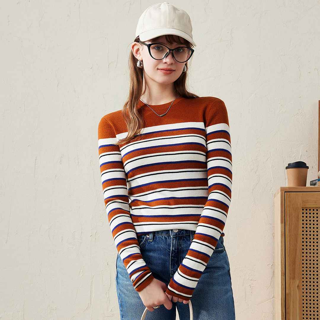 100% Wool Striped Crew Neck Sweater