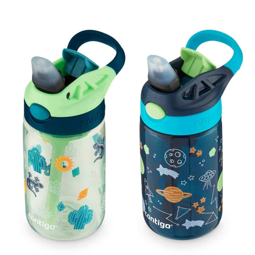 Home Contigo Contigo Kids Water Bottle With Redesigned Autospout Straw, 14 Oz, Cucumber Cacti & Blue Cosmos Green
