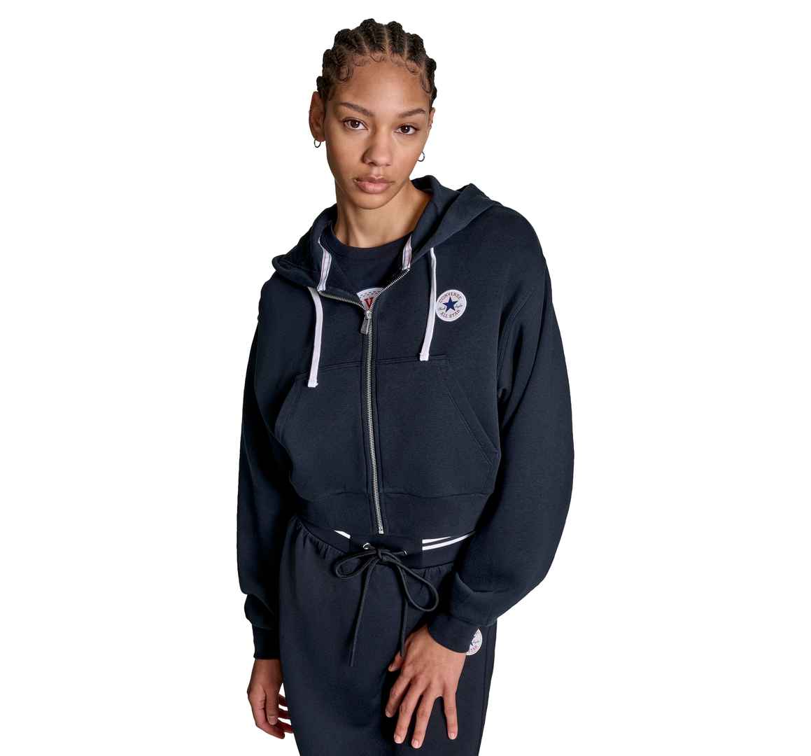 A closet staple gets a cropped take. Converse Retro Chuck Taylor Full-Zip Hoodie Polyester For Women In Black, Size Large