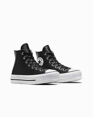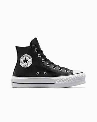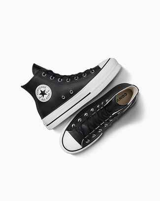 Home Converse Converse Chuck Taylor All Star Leather Platform High Top Shoe For Women In Black, Size 5