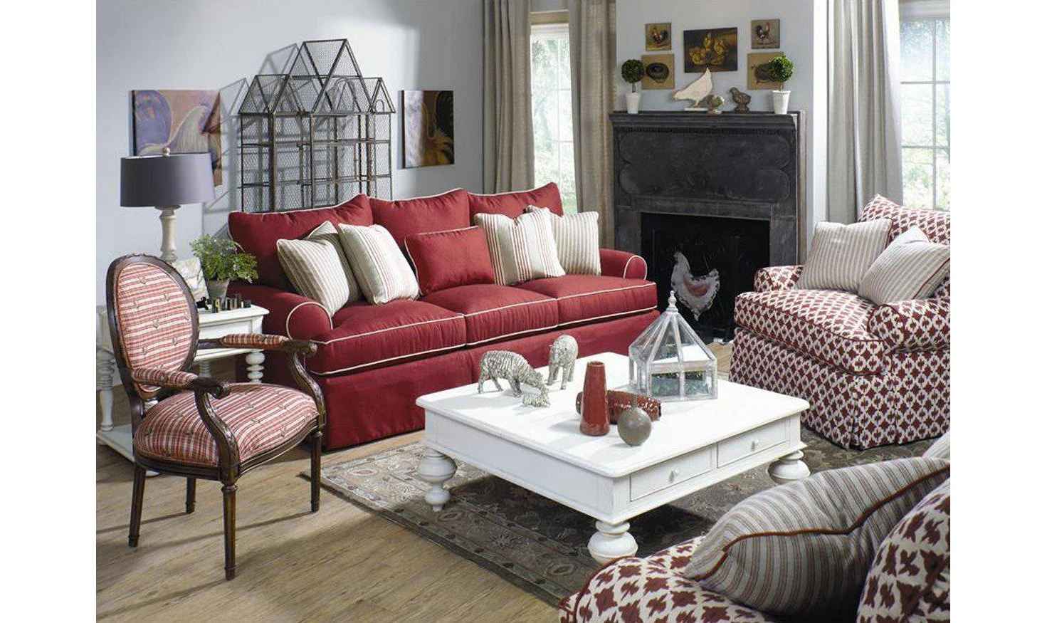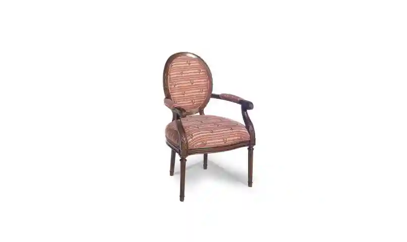 From the Paula Deen Home collection, this charming oval-back arm chair features classic elements: beautiful carved detailing around the oval and down the arms, tall fluted legs with a delicate scale. Crisp tailoring accents the tight seat and back to give this chair a vintage feel and a timeless sil...more