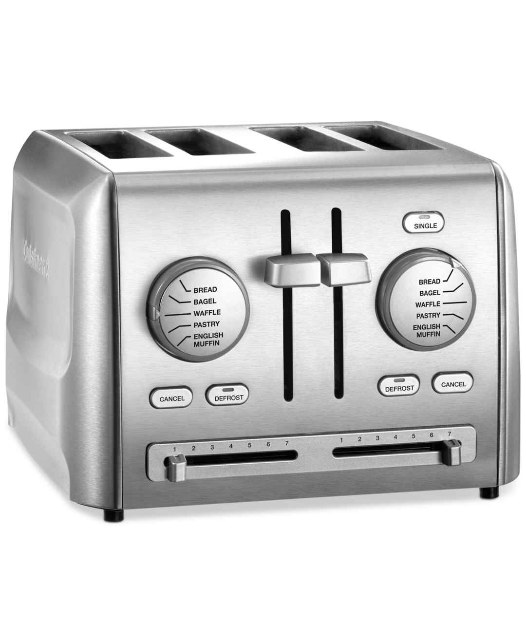 Mornings just got easier with this Cuisinart toaster. It can hold four slices of your favorite bread, whether you prefer a thick bagel or a thin sandwich slice. Model Cpt-640