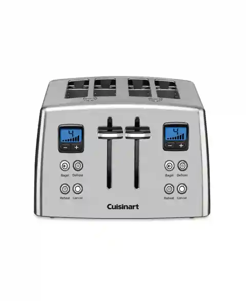 Take toasting to a new level with the stylish stainless 4-Slice Countdown Metal Toaster by Cuisinart, featuring generously wide slots to hold toast, English muffins, pastries, and even your favorite bagel halves.