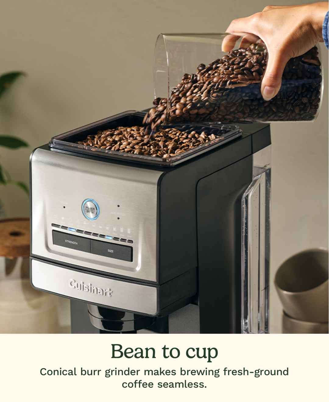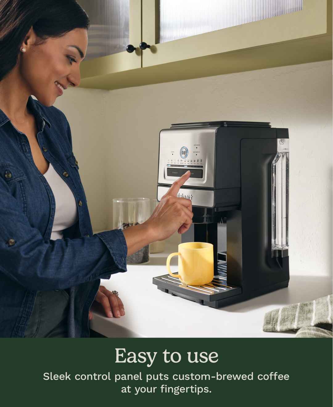 The Cuisinart Custom Grind and Brew Single Cup Coffee Maker bring together the rich flavor of fresh ground beans and the ease of single-serve brewing. It features a stainless-steel conical burr mill that grinds whole beans just before brewing, so every cup is fresh and bold. This Cuisinart coffee ma...more