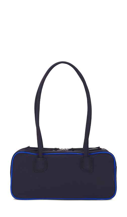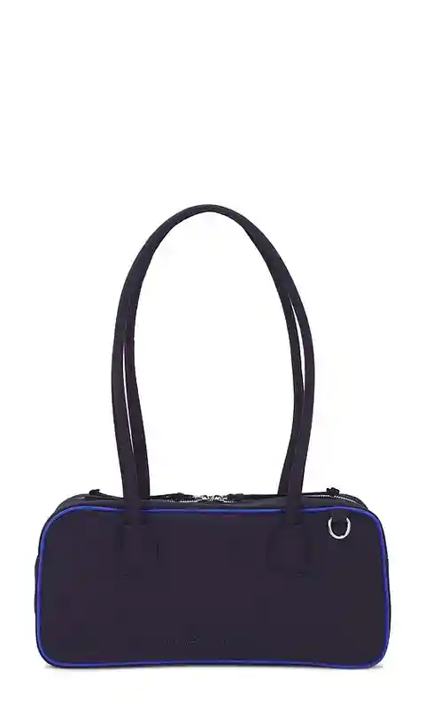 Damson Madder Lenny Large Bowler Bag in Navy. Damson Madder Lenny Large Bowler Bag in Navy. Recycled polyester exterior with textile lining. Top zipper closure. One main compartment. Dual integrated shoulder straps. DDER-WY13. AW25-DM-2199.