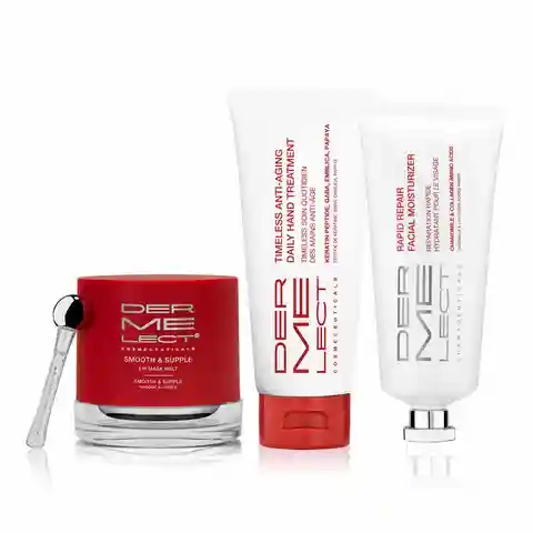 Ease away stress and harness the beauty of hydration! Unwind, relieve and replenish with our curated trio for dry, cracked, lackluster skin on the lips, face and hands. Smooth & Supple Lip Mask Melt: Next immerse the vulnerable area of the lips with our velvety superstar powered by Proprietary Moist...more
