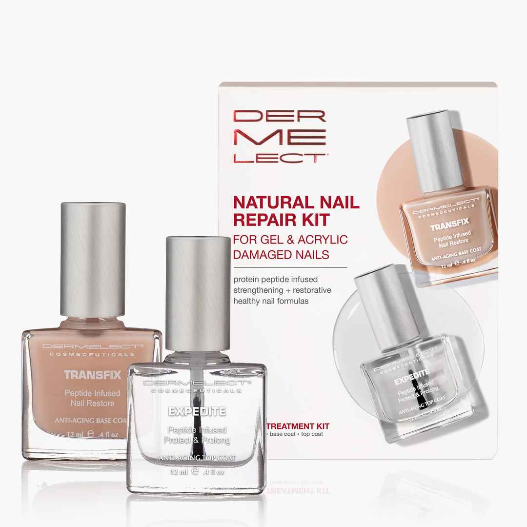 Nurse your damaged nails back to long, strong, and naturally beautiful with this two-step repair kit meant to address nails that are damaged via artificial means, gels and acrylics. Utilizing the latest technologies, Natural Nail Repair Kit contains two innovative, peptide-infused nail treatments sp...more