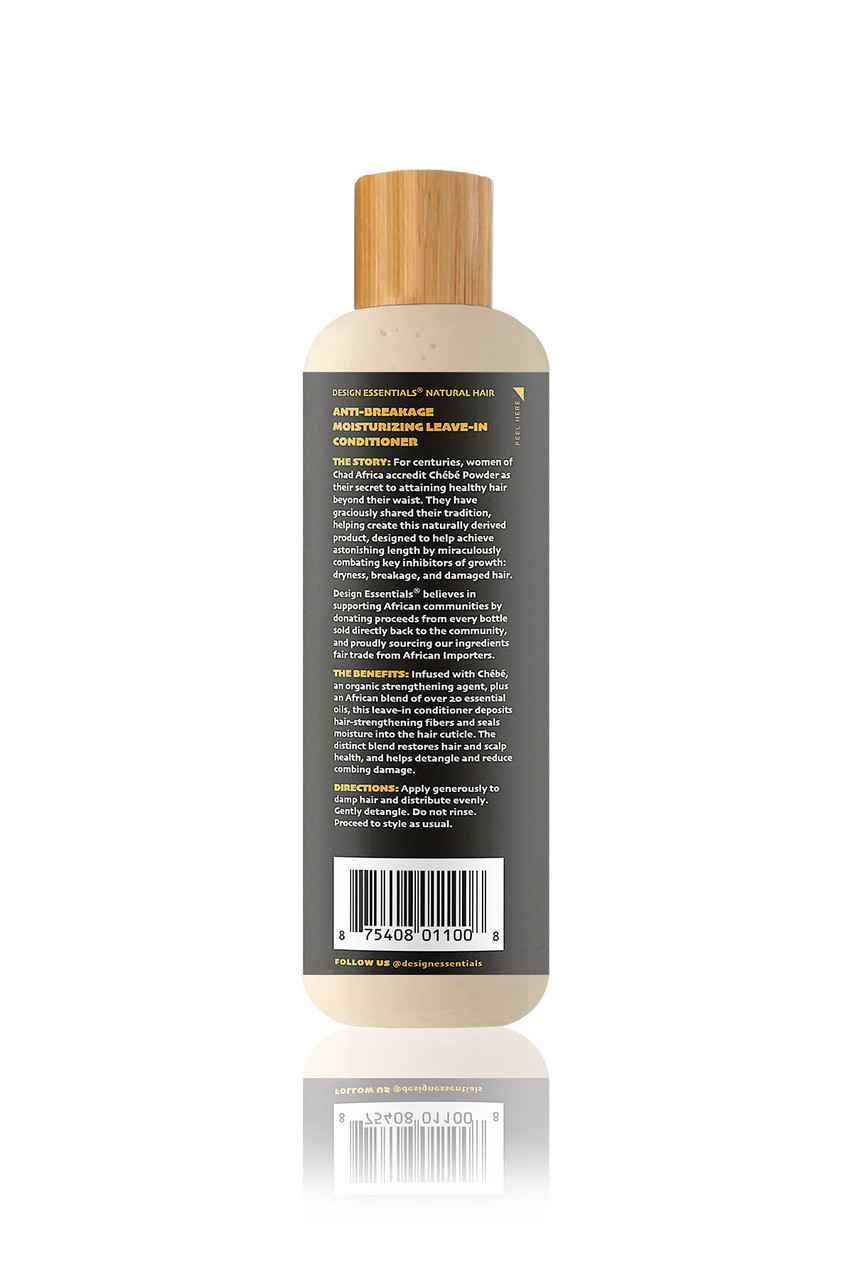 Infused with Chebe, an organic strengthening agent, the Design Essentials Natural African Chebe Anti-Breakage Moisturizing Leave-In Conditioner deposits hair-strengthening fibers and seals moisture into the hair cuticle. The distinct blend restores hair and scalp health, and helps detangle and reduc...more