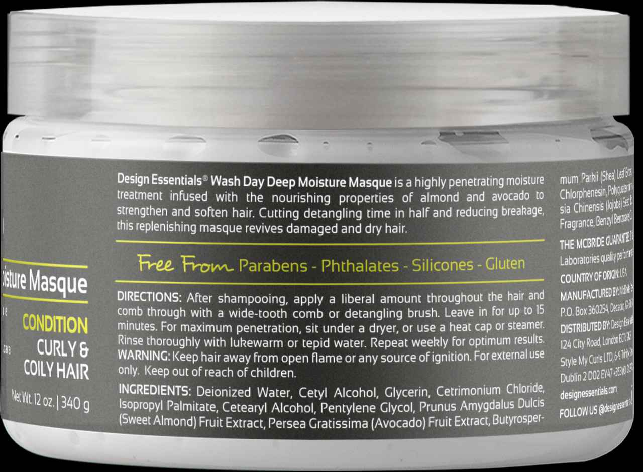 Beautiful hair deserves moisture from the start. Enter our Design Essentials Natural Almond & Avocado Wash Day Deep Moisture Masque. This highly penetrating moisture treatment is infused with the nourishing properties of Almond and Avocado oils to strengthen and soften hair.Combat dry hair with thi...more