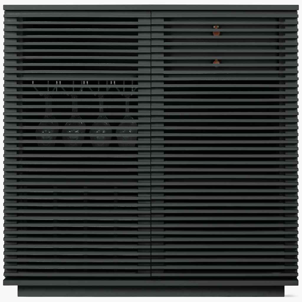 The Line Collection (2012) is distinguished by horizontal lines that lend a sense of restfulness. This louvered design also serves a purpose on applicable units, allowing remotes to control devices inside. Line brings order to electronics, barware, tableware, and even office supplies. Designer Natha...more