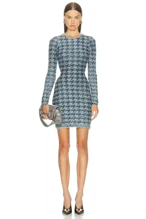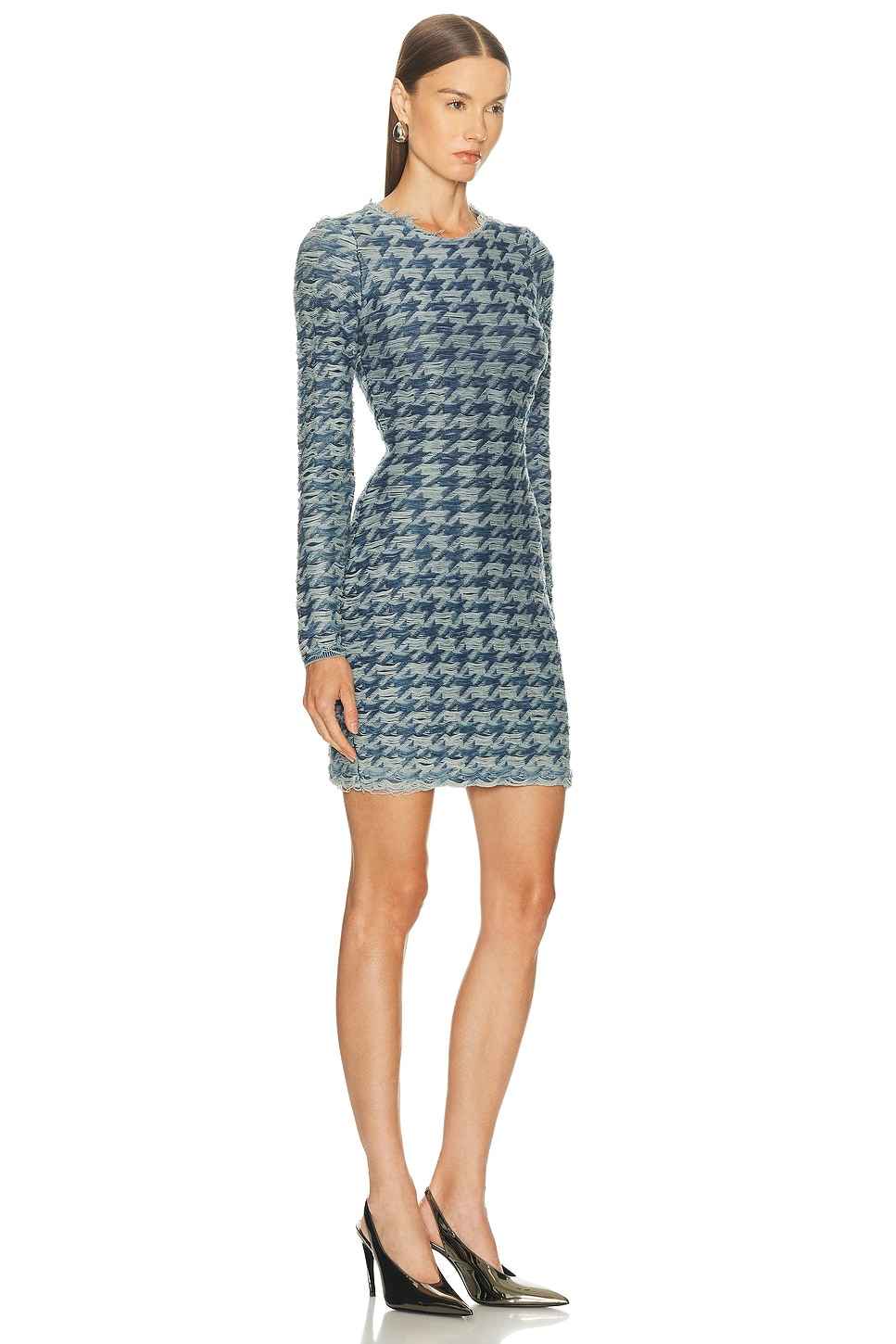 Diesel Long Sleeve Mini Dress in Blue 100% cotton. Hand wash. Unlined. Exposed back zipper closure. Worn-in texture and floating threads. Destroyed fix denim fabric forming a tactile houndstooth pattern. DIEF-WD67. A21446-0EGCA-8ATA. About the designer: