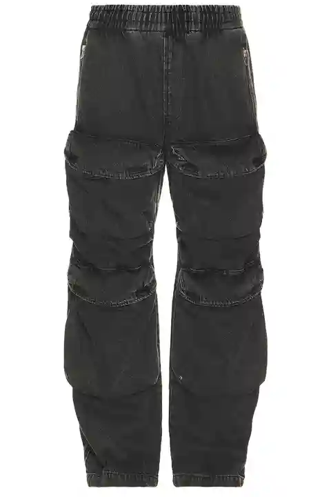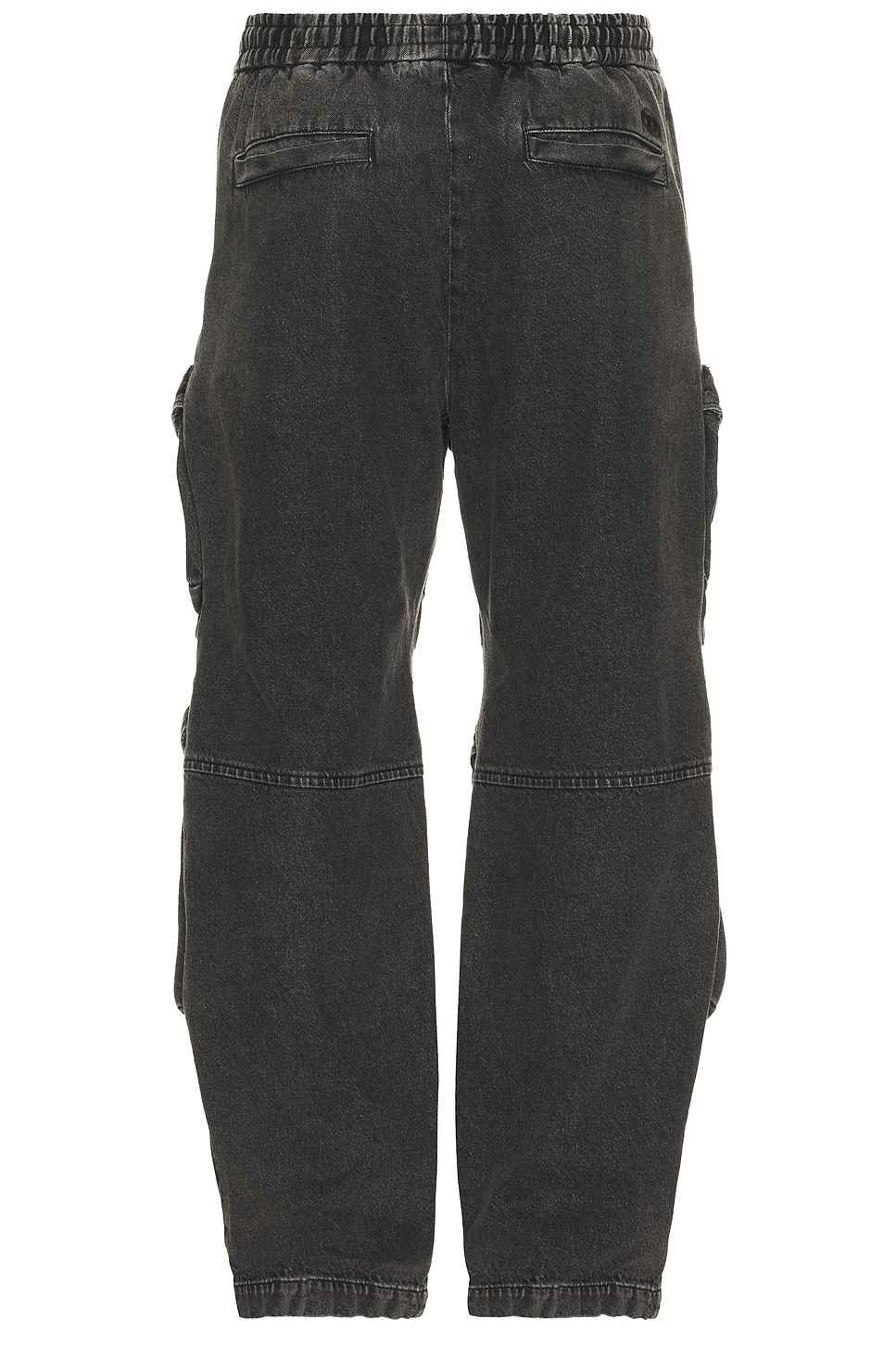 Diesel Baertson Cargo Pant in Black 100% cotton. Made in Turkey. Machine wash. Pull-on styling with elastic waistband. 8-pocket styling. Midweight denim fabric with subtle fading throughout. DIEF-MP15. A149940CBDH. About the designer: