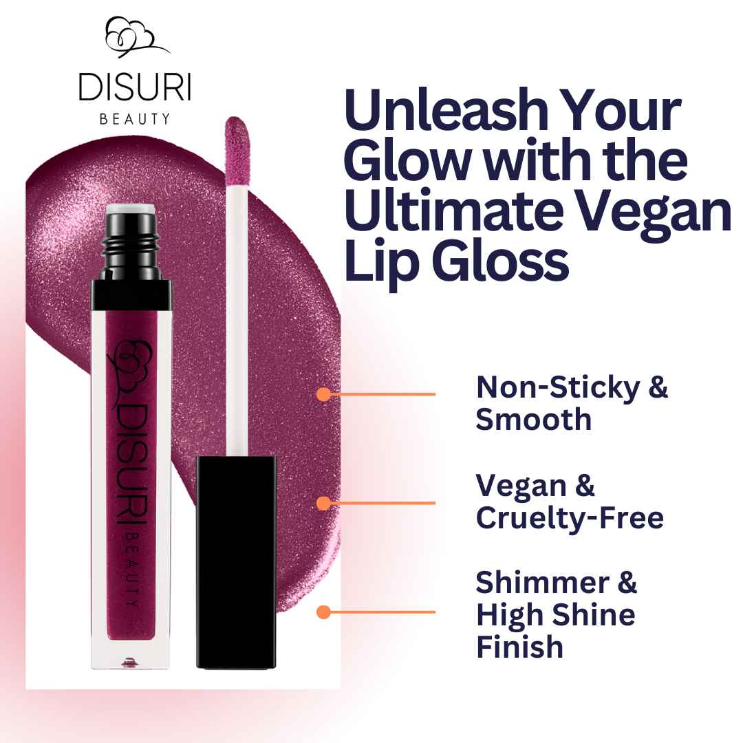 DISURI BEAUTY Shimmer Blast Lip Gloss -"Sexy Berry Dreams". Ultra Shiny | Non-Sticky | Vegan & Cruelty-Free. Turn heads with Sexy Berry Dreams, a luscious lip gloss that delivers a seductive berry shimmer with ultra-shiny appeal. Non-sticky and lightweight, this gloss offers the perfect blend of moi...more