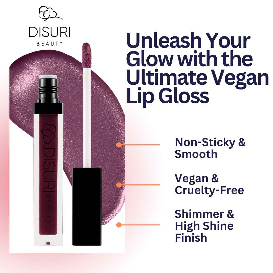 DISURI BEAUTY Shimmer Blast Lip Gloss - "Napa Valley". Ultra Shiny | Non-Sticky | Vegan & Cruelty-Free. Sip in the rich, vineyard-inspired color of Napa Valley Shimmer Blast Lip Gloss. This luxurious gloss offers a deep, wine-colored shimmer thats perfect for adding a touch of sophistication to your...more