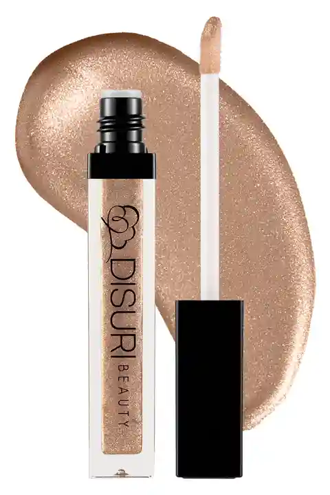 DISURI BEAUTY Shimmer Blast Lip Gloss - "Pink Gold". Ultra Shiny | Non-Sticky | Vegan & Cruelty-Free. Experience luxury with Pink Gold Shimmer Blast Lip Gloss, a high-shine gloss that combines soft pink hues with golden shimmer. The non-sticky formula glides on effortlessly, giving your lips a radia...more