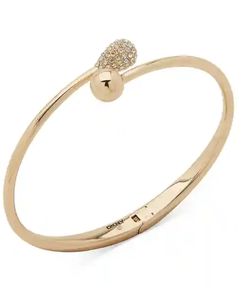 Dkny delivers flawless gold-tone beauty with this hinged cuff bracelet designed with twinkling crystals.