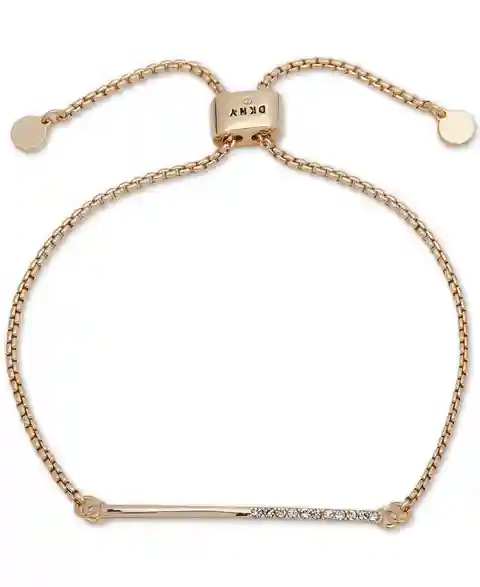 Pave crystals shine from half of the bar design featured on this fashionable Dkny slider bracelet.