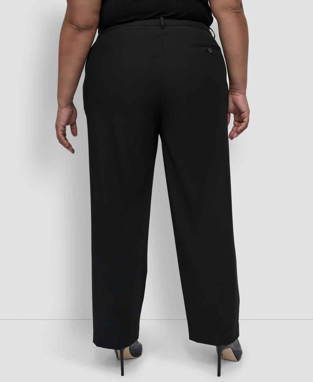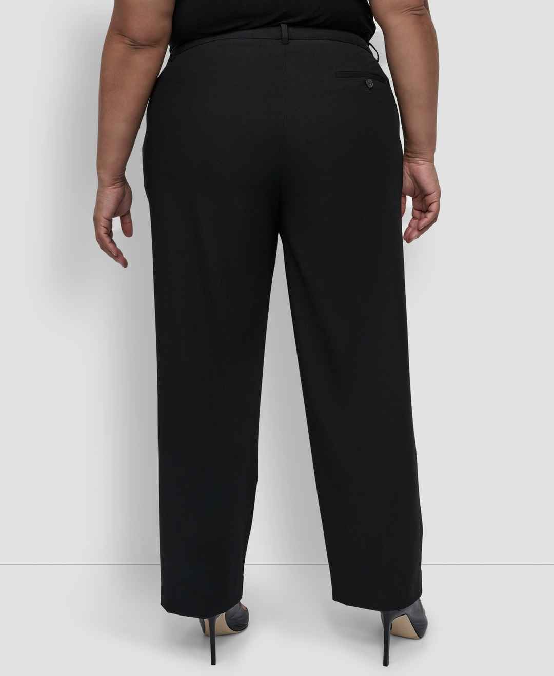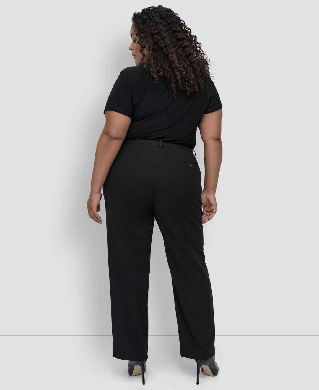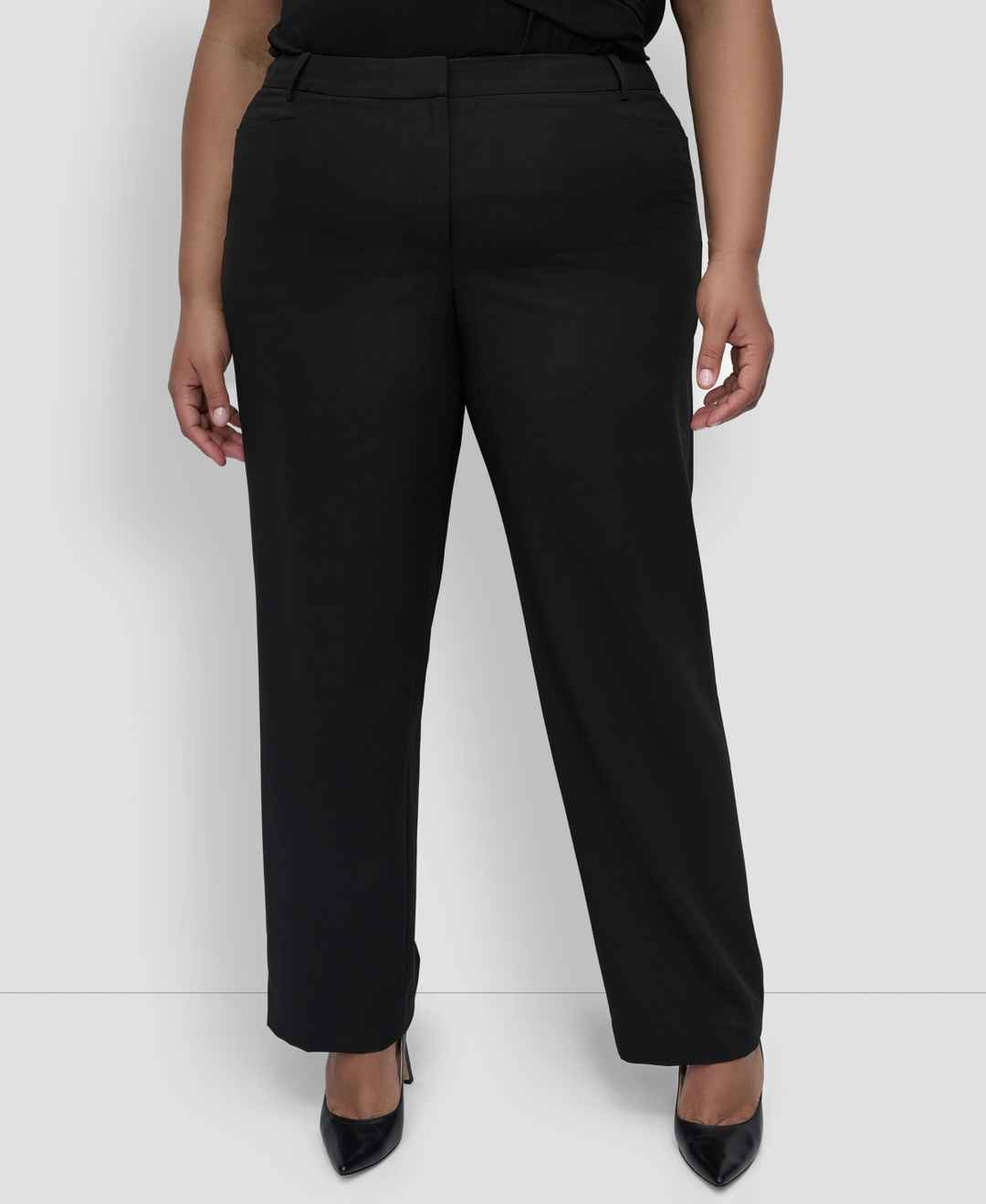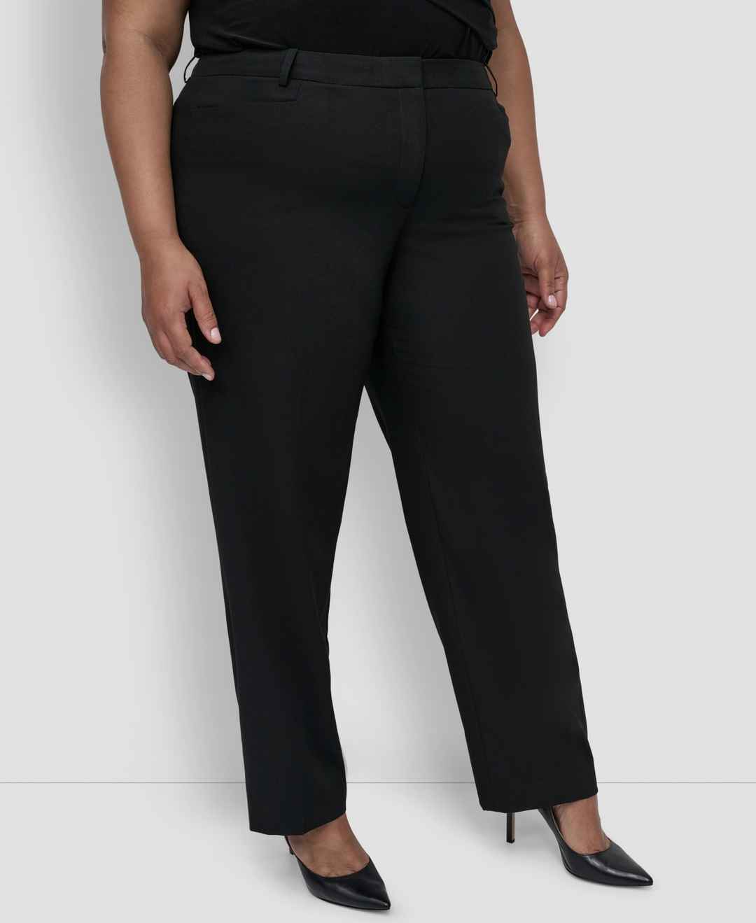 These plus size mid rise pants from Dkny feature front scoop pockets, and a hook-and-bar closure.